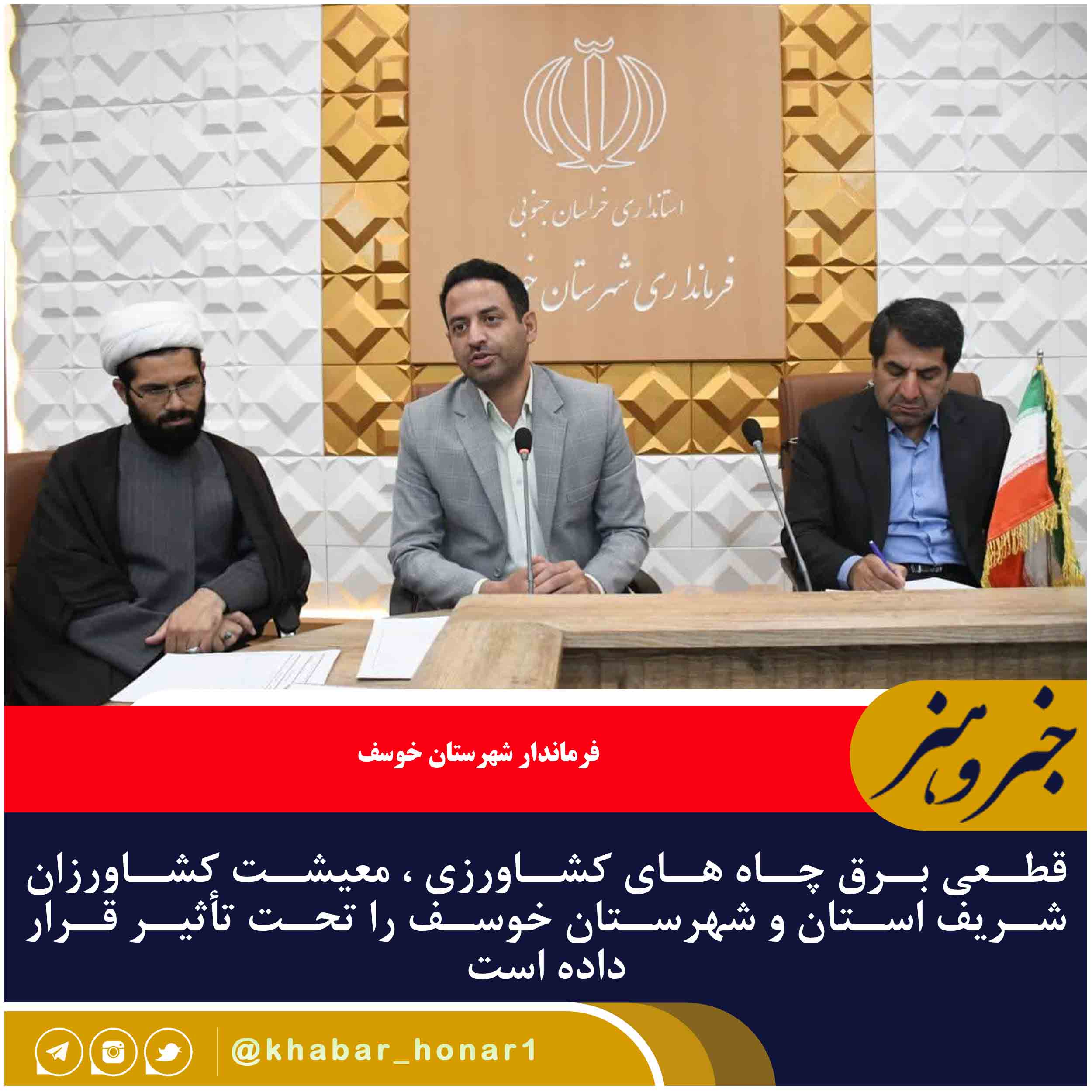 فرماندار شهرستان خوسف : قطعی برق چاه های کشاورزی ، معیشت کشاورزان شریف استان و شهرستان خوسف را تحت تأثیر قرار داده است