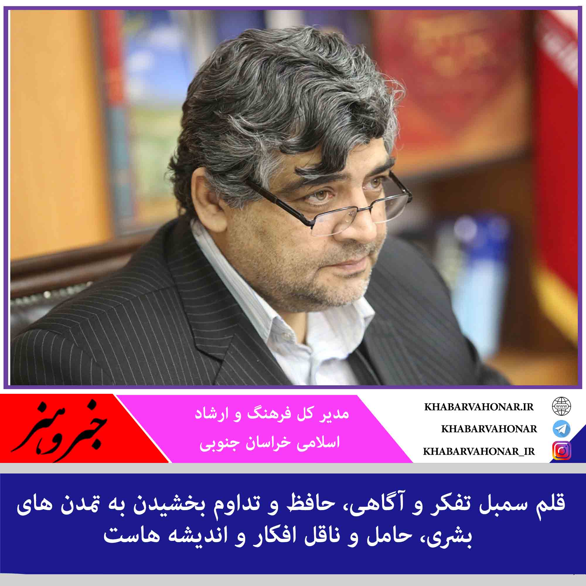 مدیر کل فرهنگ و ارشاد اسلامی خراسان جنوبی طی پیامی ۱۴ تیرماه ، روز قلم را به اهالی فکر و اندیشه تبریک گفت.در متن پیام ناصر نبی زاده آمده است:
