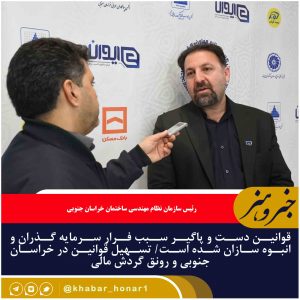 رئیس سازمان نظام مهندسی ساختمان خراسان جنوبی با تاکید بر تسهیل قوانین در خراسان جنوبی گفت: چراکه در این صورت کمک می شود تا سرمایه گذاران از استان خارج نشوند و گردش مالی در استان اتفاق بیفتد.