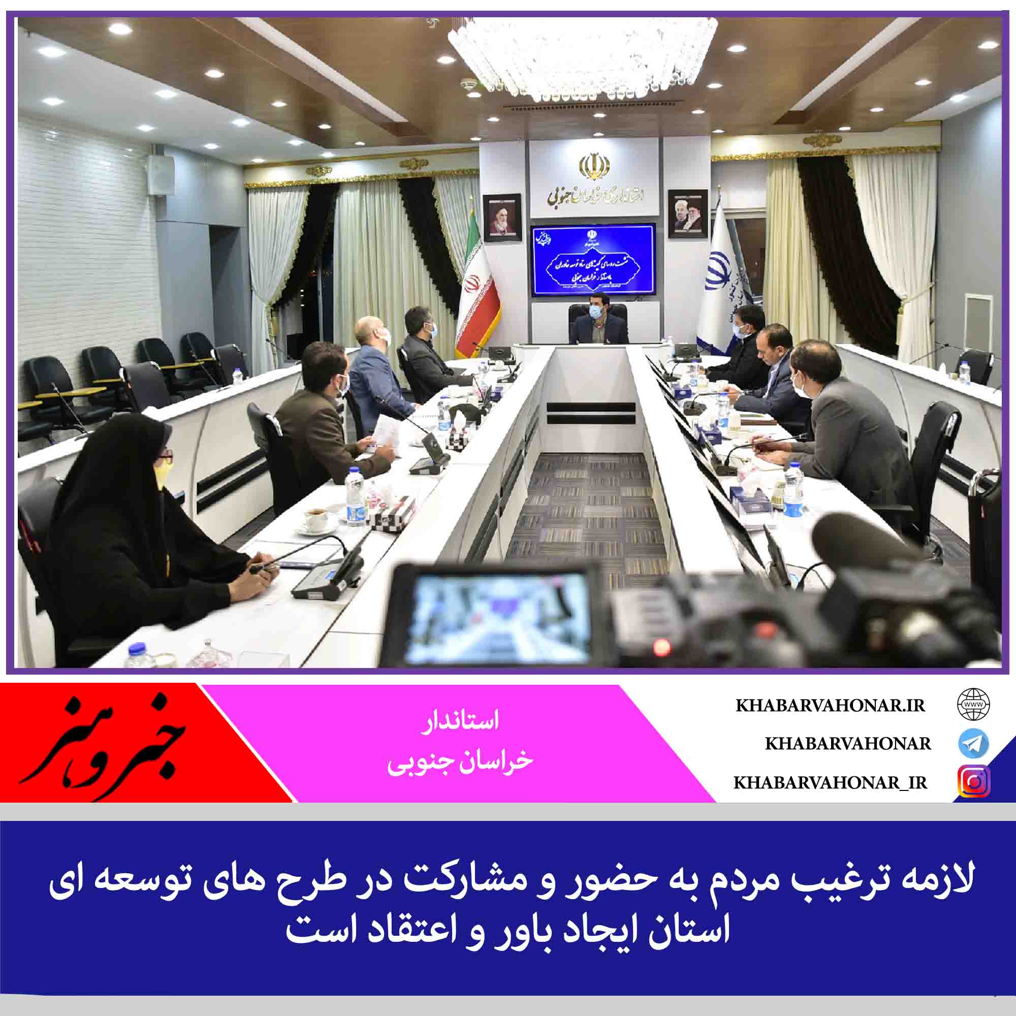 ?وی تصریح نمود: لازمه ترغیب مردم به حضور و مشارکت در طرح های توسعه ای استان ایجاد باور و اعتقاد است.