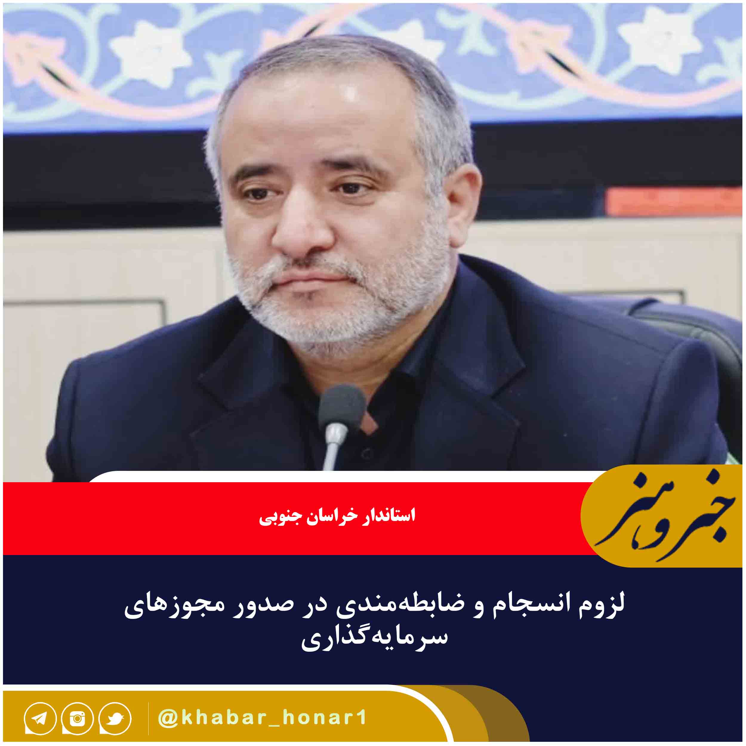 استاندار خراسان جنوبی با تأکید بر لزوم ضابطه‌مندی در صدور مجوزهای سرمایه‌گذاری، خواستار توقف صدور مجوز برای صنایع پرآب‌بر، نظارت جدی بر مجتمع‌های بین‌راهی و تسهیل ورود سرمایه‌گذاران واقعی شد.