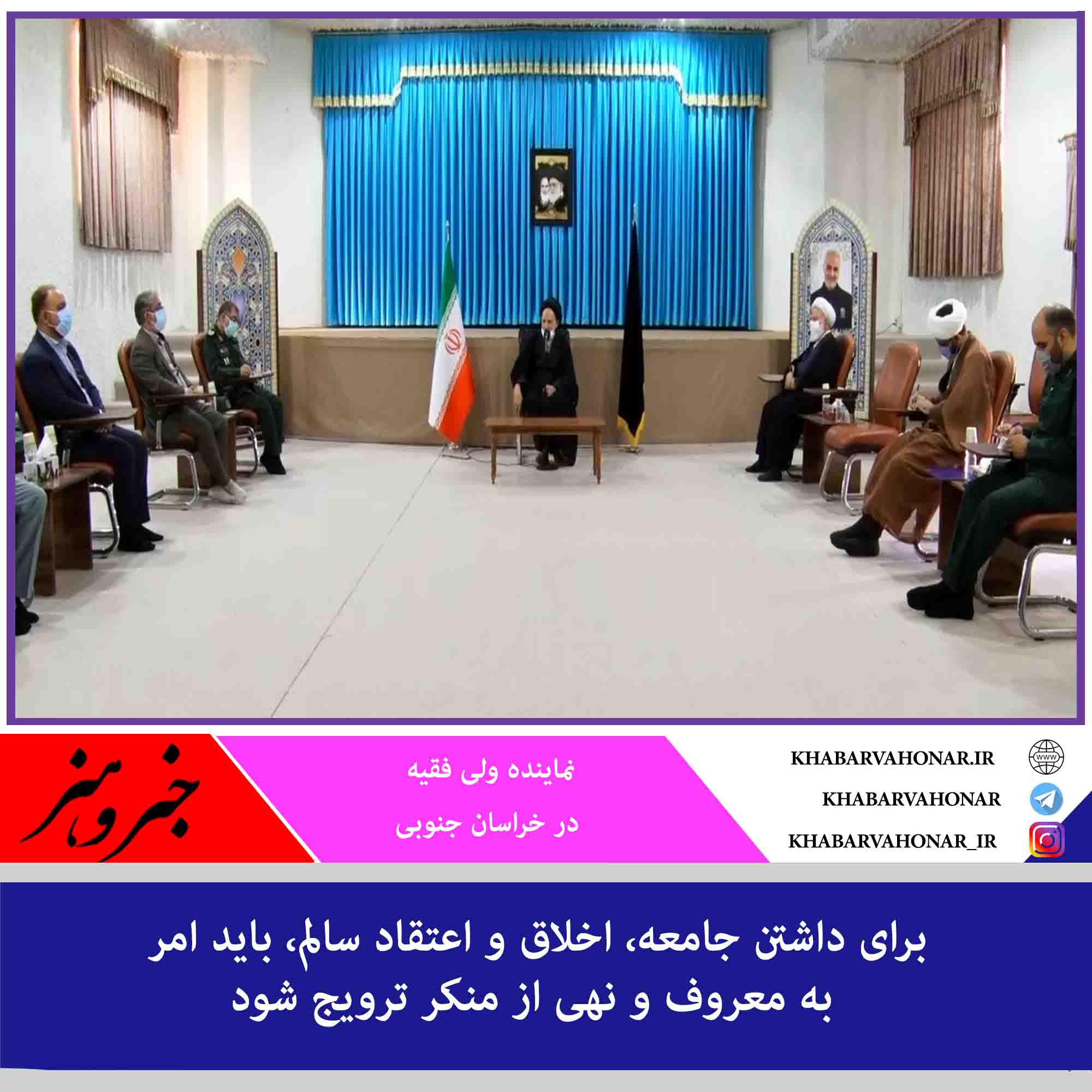 نماینده ولی فقیه در استان در مراسم معارفه رئیس جدید ستاد امر به معروف و نهی از منکر شهرستان بیرجند گفت: برای داشتن جامعه، جوان، ناموس، اخلاق و اعتقاد سالم، باید امر به معروف و نهی از منکر ترویج شود.