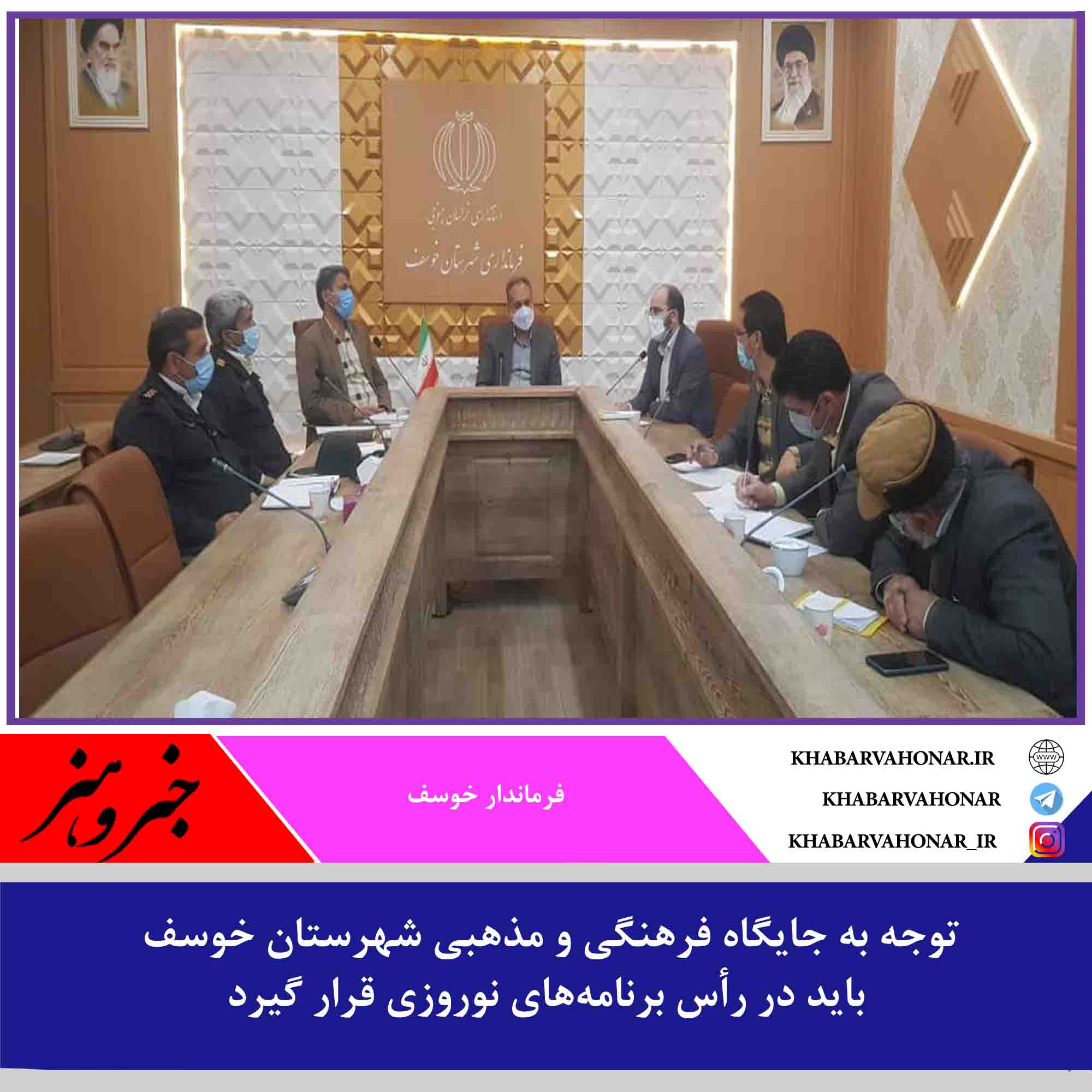فرماندار خوسف اظهار کرد: توجه به جایگاه فرهنگی و مذهبی شهرستان خوسف باید در رأس برنامههای نوروزی قرار گیرد.