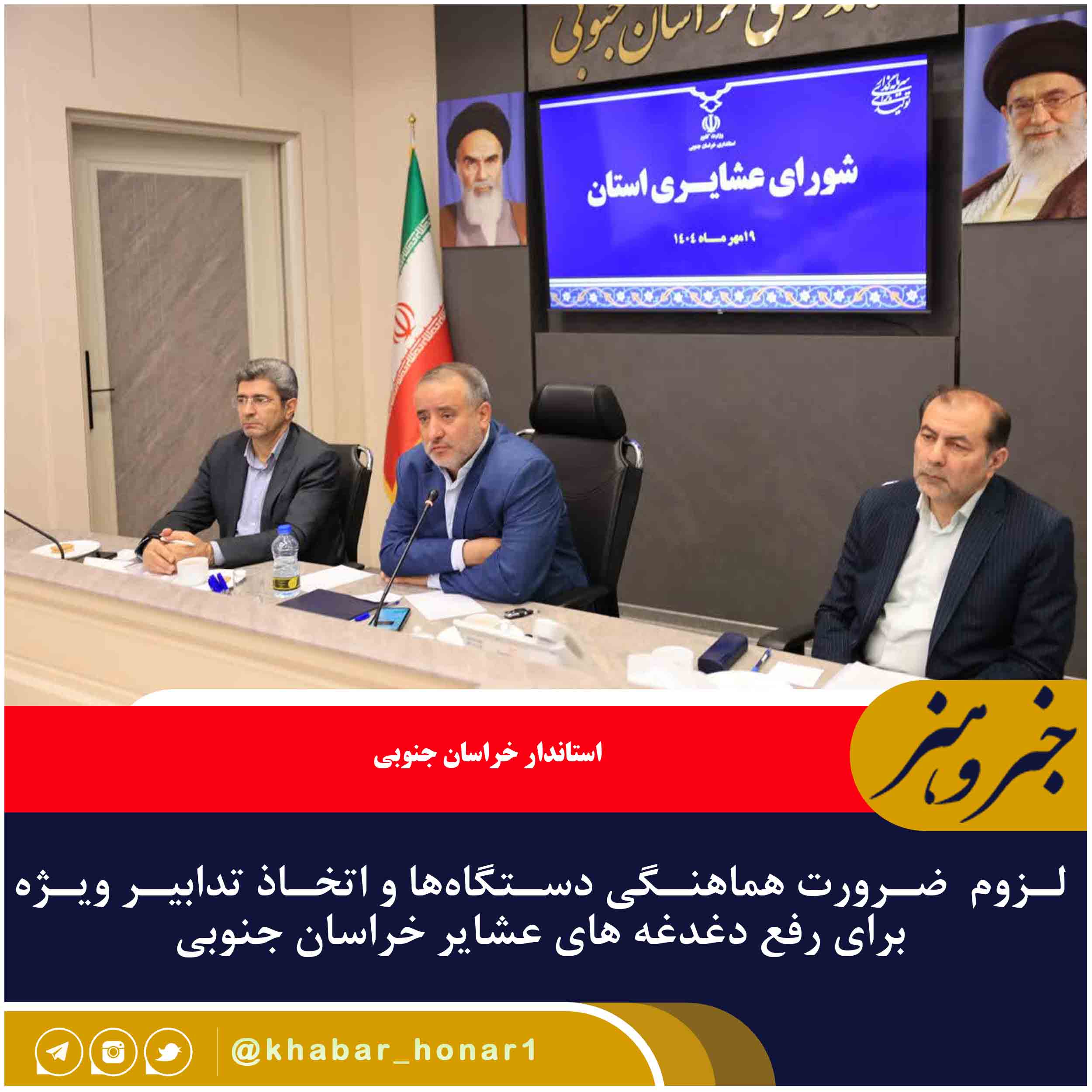 استاندار خراسان جنوبی بر ضرورت هماهنگی دستگاهها و اتخاذ تدابیر ویژه برای رفع دغدغه های عشایر استان تأکید کرد.
