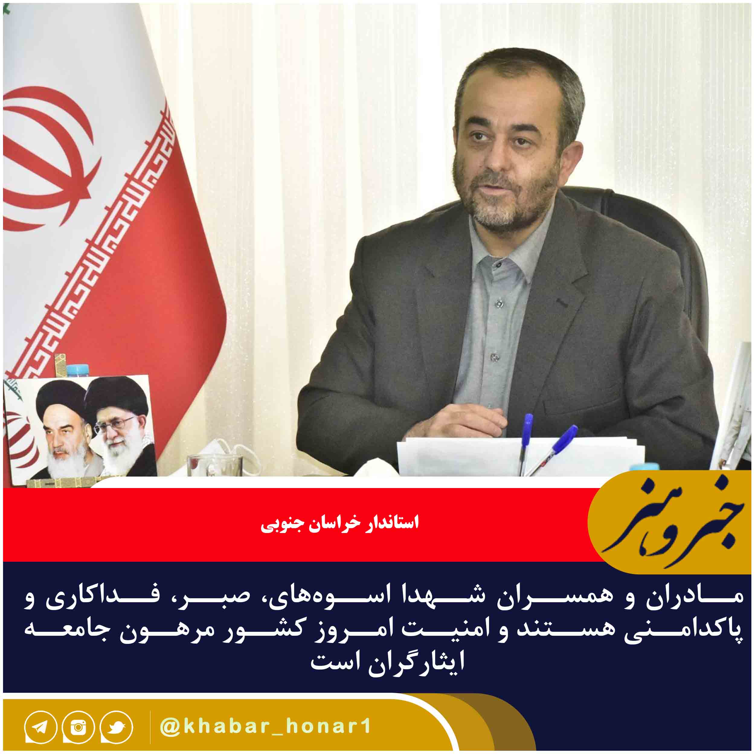 استاندار خراسان جنوبی گفت: مادران و همسران شهدا اسوههای، صبر، فداکاری و پاکدامنی هستند و امنیت امروز کشور مرهون جامعه ایثارگران است.