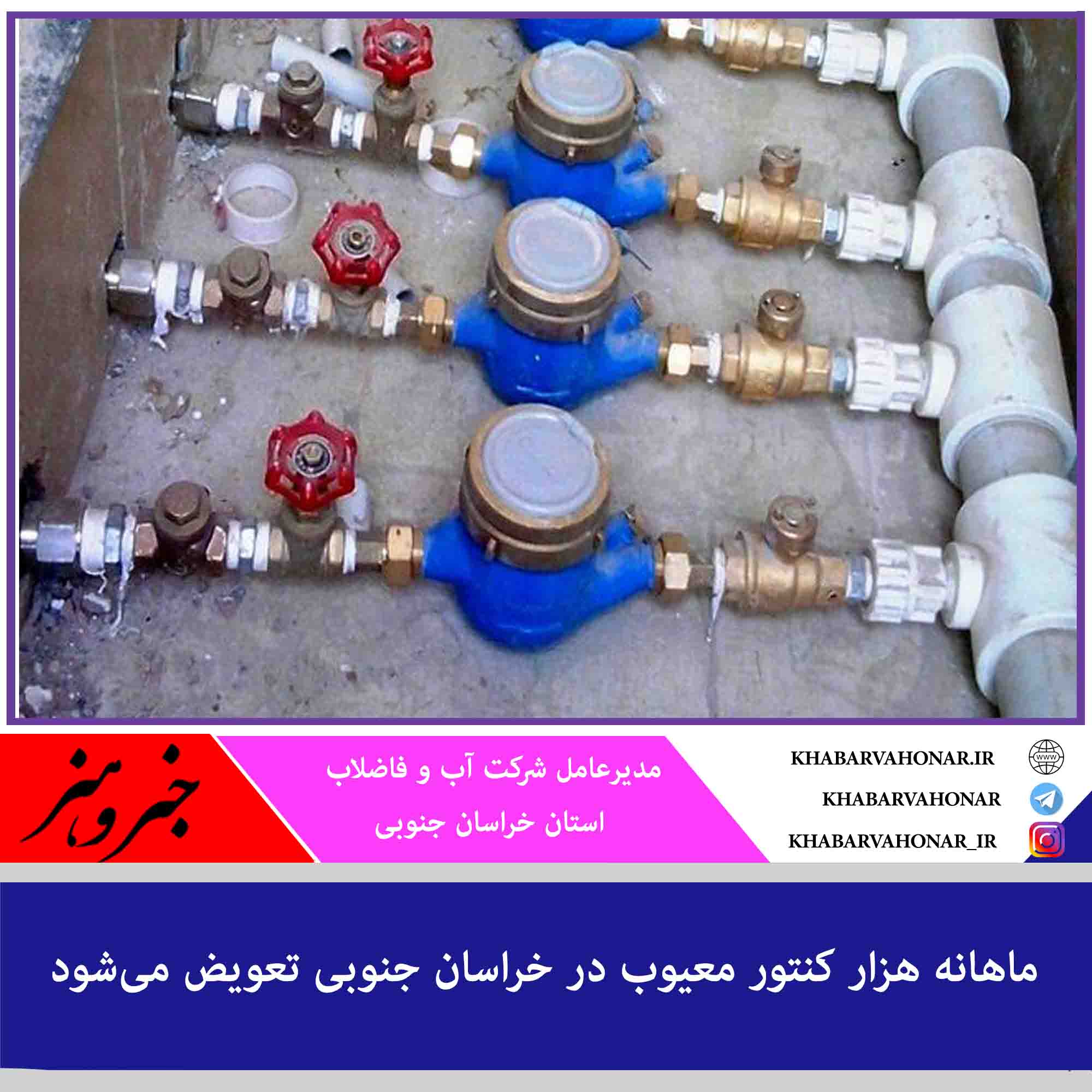 مدیرعامل شرکت آب و فاضلاب استان خراسان جنوبی گفت: برای تعویض ماهانه هزار کنتور آب در این استان برنامهریزی لازم صورت گرفته است که با این روند تا پایان امسال ۱۲ هزار کنتور معیوب، تعویض خواهد شد.