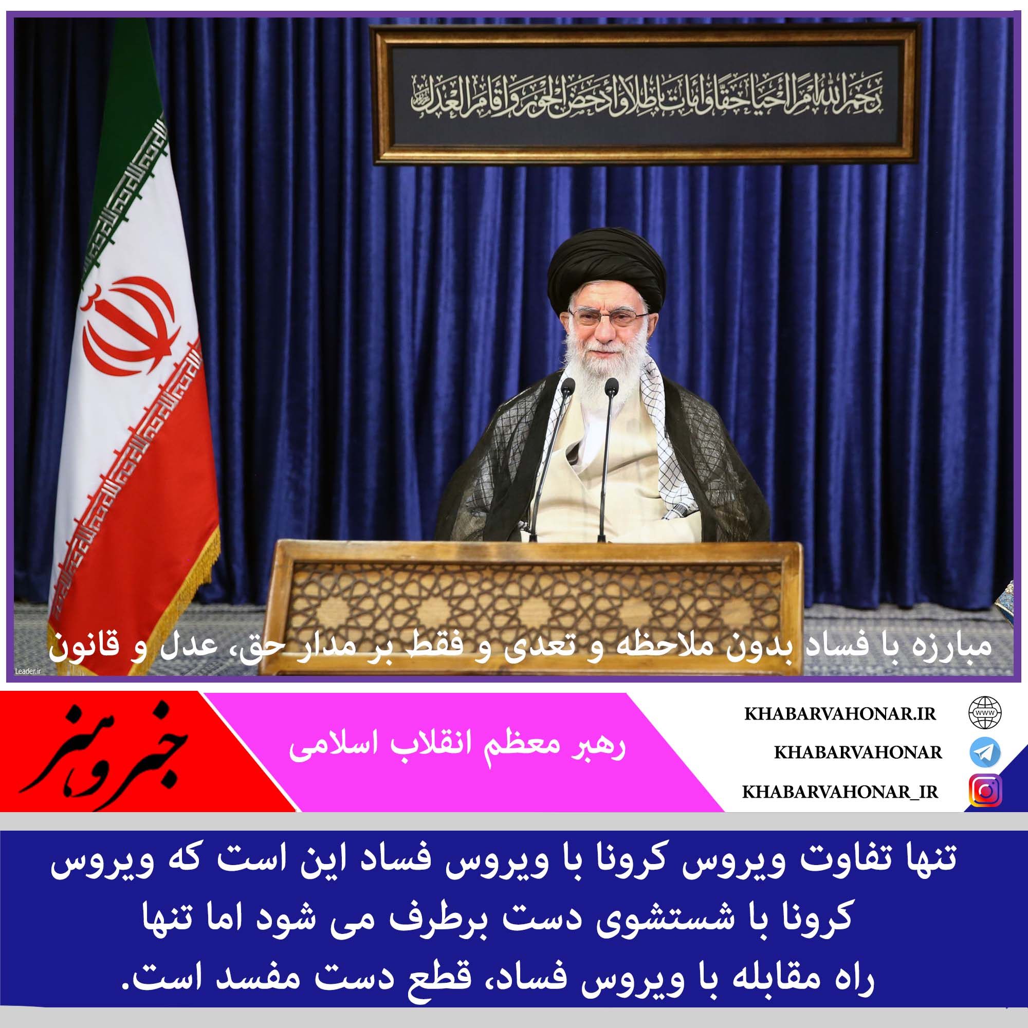 حضرت آیت الله خامنه ای با بیان اینکه مبارزه با فساد از دوره قبل در قوه قضاییه آغاز شده بود و اکنون به اوج خود رسیده است، گفتند: مردم از مبارزه بدون ملاحظه و بدون اغماض با مفسد امیدوار می شوند زیرا فساد مالی و اقتصادی همچون ویروس کرونا، بسیار خطرناک و بهشدت واگیردار و مُسری است.