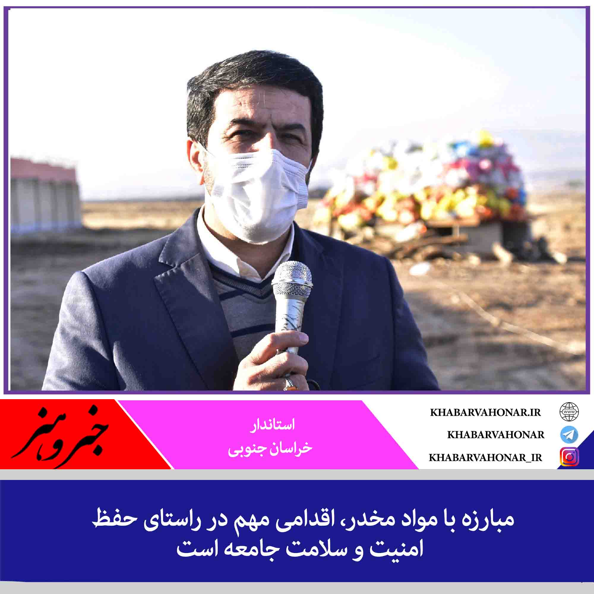 ?استاندار خراسان جنوبی گفت: مبارزه با مواد مخدر، اقدامی مهم در راستای حفظ امنیت و سلامت جامعه است.