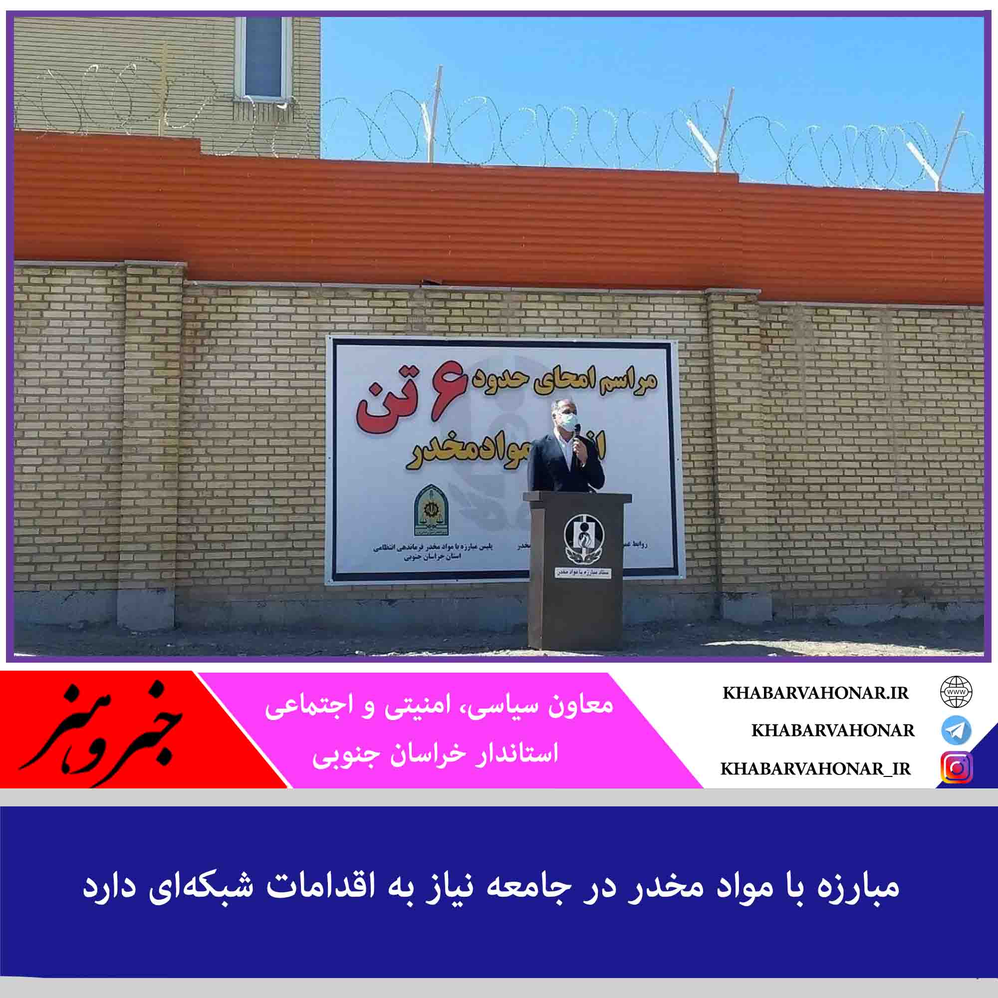 معاون سیاسی، امنیتی و اجتماعی استاندار خراسان جنوبی گفت: امحای مواد مخدر نمونهای از اقدامات دستگاههای انتظامی، نظامی و امنیتی استان است که وقتی این مواد سوخته میشوند از طرفی دیگر سلامت و امنیت جامعه افزایش مییابد.