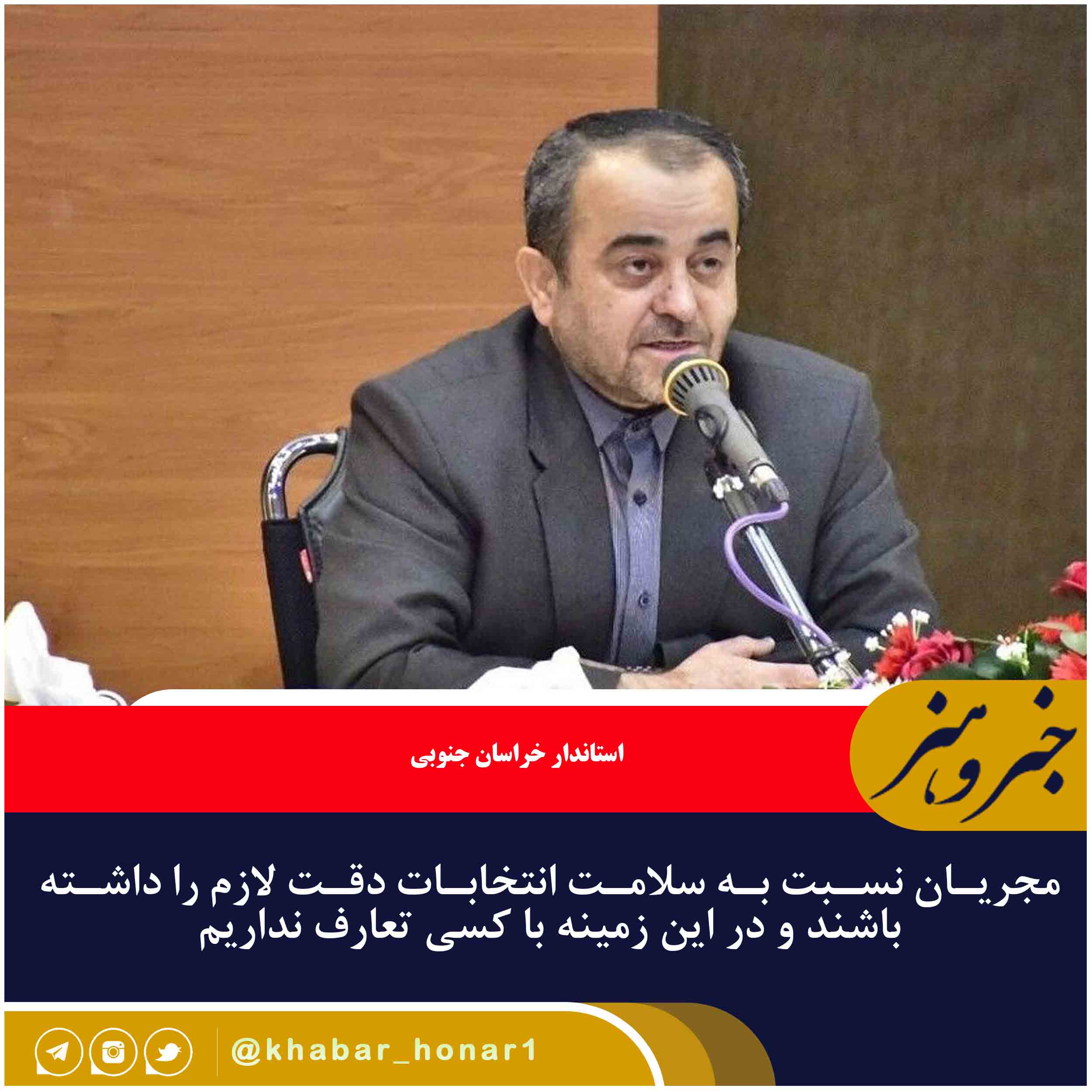 استاندار خراسان جنوبی گفت: مجریان نسبت به سلامت انتخابات دقت لازم را داشته باشند و در این زمینه با کسی تعارف نداریم.