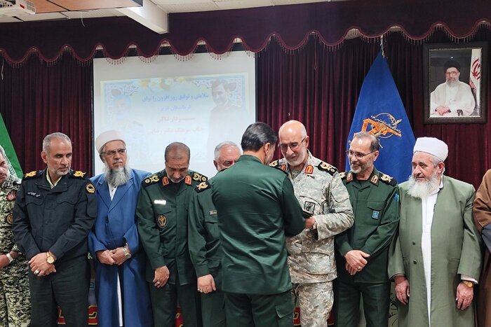 وی از زحمات و تلاش‌های سردار تناکی، فرمانده پیشین قرارگاه عملیاتی شهید ناصری قدردانی کرد که در طول سال‌های خدمت خود، همواره در گمنامی و با اخلاص، در حوزه امنیت به ویژه در جنوب شرق کشور فعالیت کرده و در دوران دفاع مقدس و پس از آن، ماموریت‌های مهمی را در نقاط مختلف کشور انجام داده است.