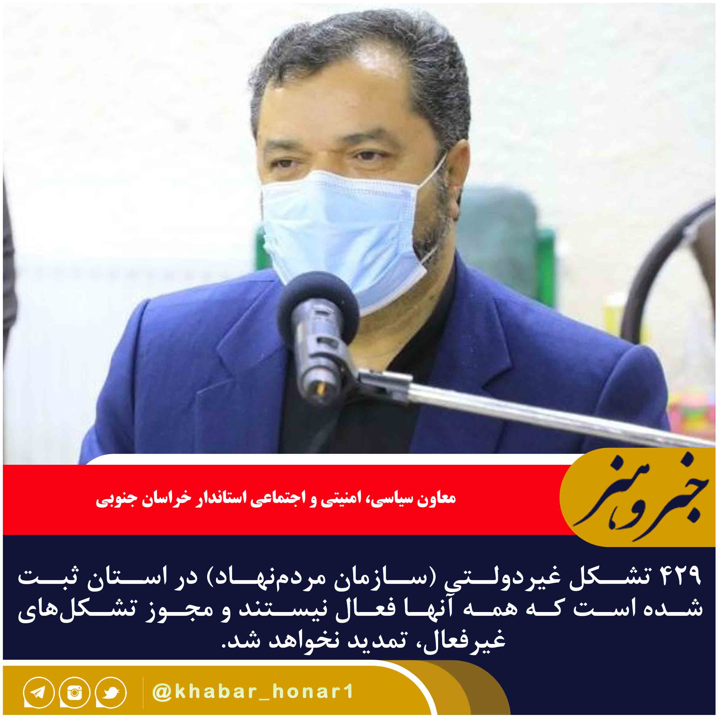 معاون سیاسی، امنیتی و اجتماعی استاندار خراسان جنوبی گفت: ۴۲۹ تشکل غیردولتی (سازمان مردمنهاد) در استان ثبت شده است که همه آنها فعال نیستند و مجوز تشکلهای غیرفعال، تمدید نخواهد شد.