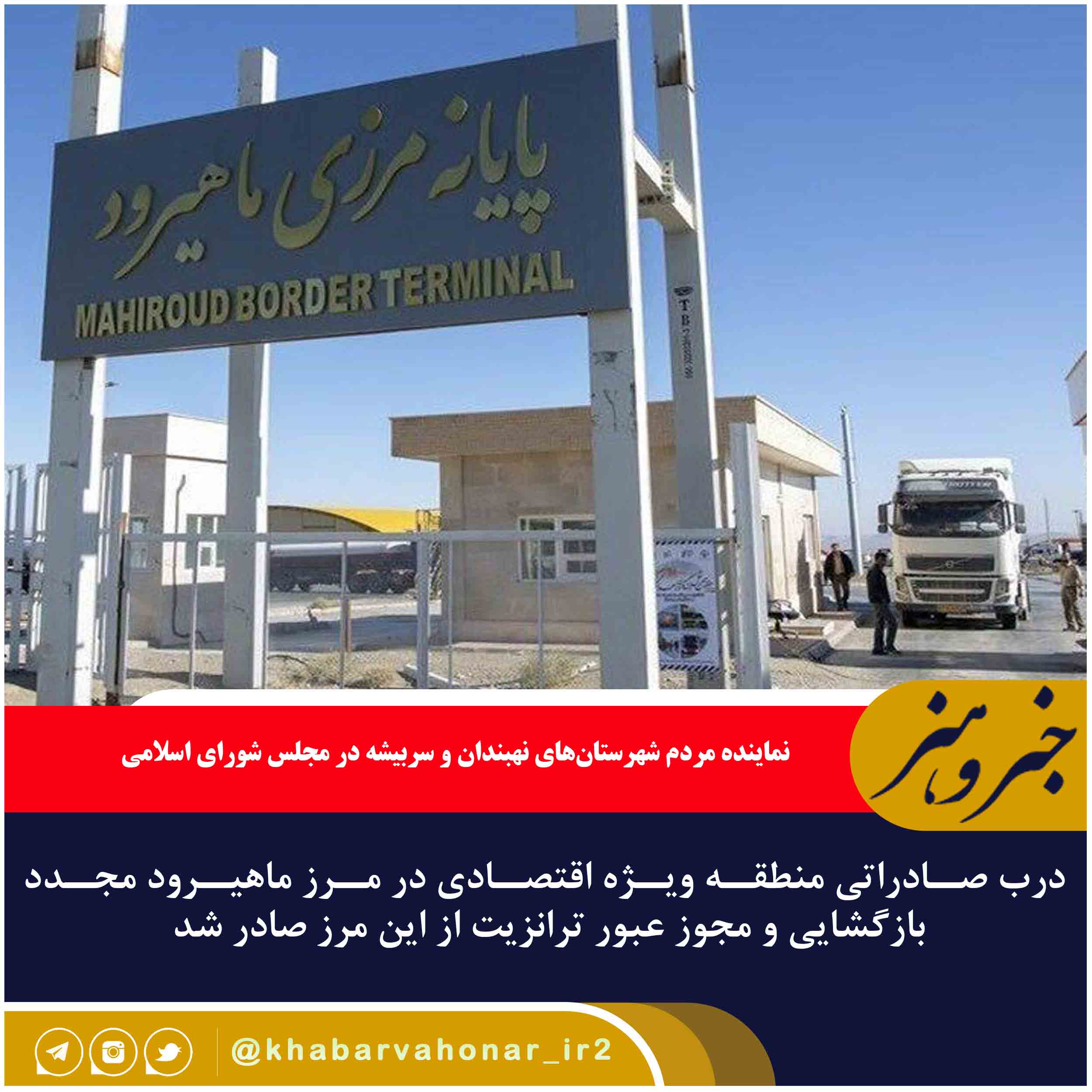 نماینده مردم شهرستانهای نهبندان و سربیشه در مجلس شورای اسلامی گفت: درب صادراتی منطقه ویژه اقتصادی در مرز ماهیرود مجدد بازگشایی و مجوز عبور ترانزیت از این مرز صادر شد.