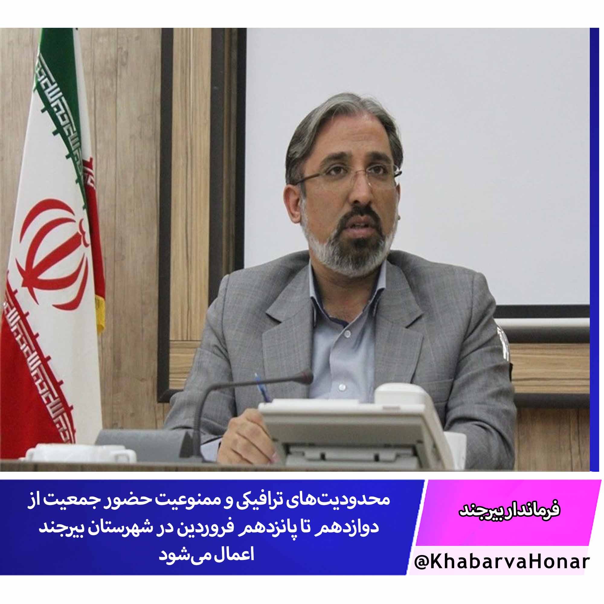فرماندار بیرجند بیان کرد: لذا محدودیتهای ترافیکی و ممنوعیت حضور جمعیت از روز ۱۲ لغایت ۱۵ فروردین در شهرستان بیرجند به شرح زیر خواهد بود: