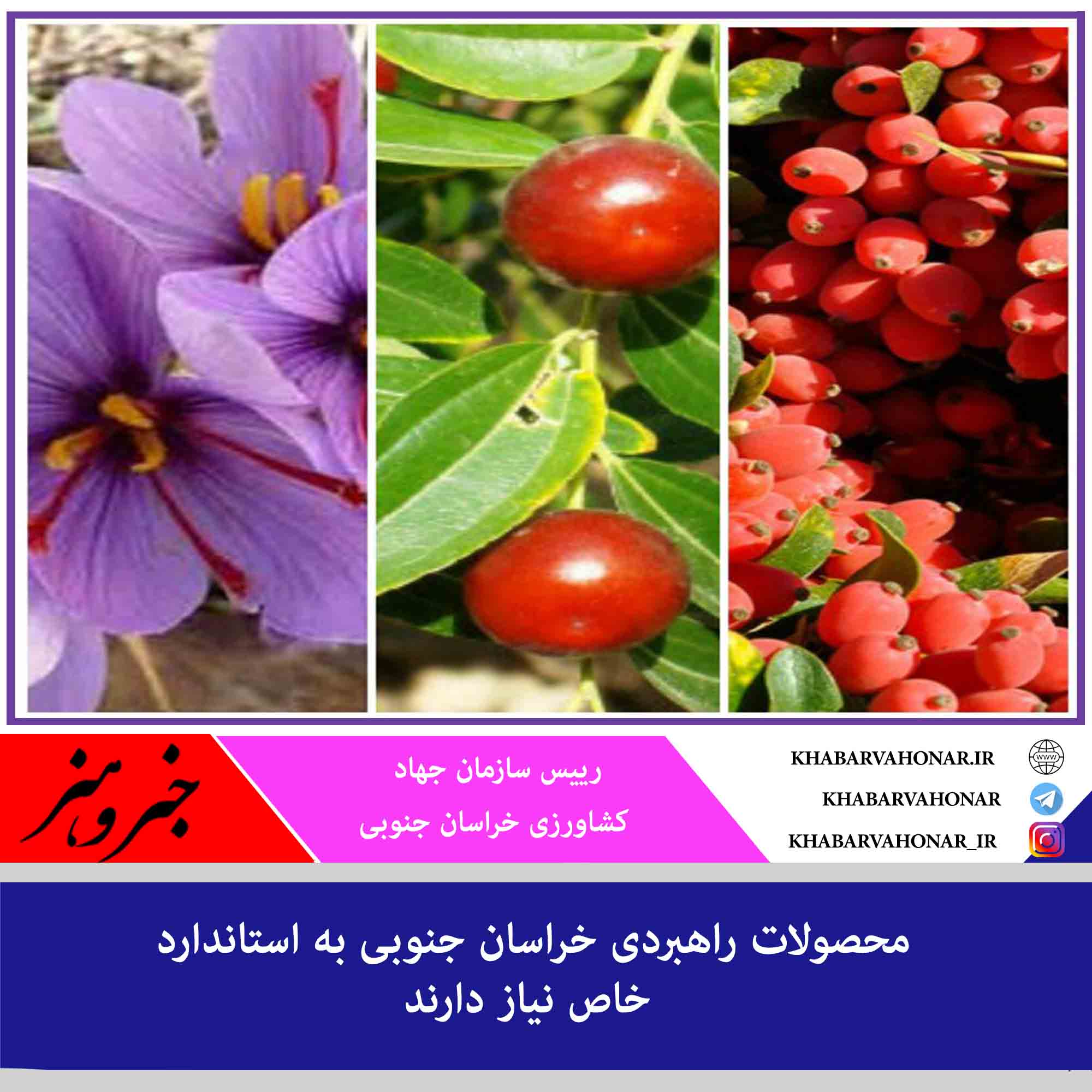 استاندار خراسان جنوبی هم در این باره گفت: باید با تشکیل جلسات مشترک بین سازمان جهاد کشاورزی، اداره کل استاندارد، دانشگاه علوم پزشکی، جهاد دانشگاهی و سایر دستگاههای مربوطه با محوریت معاونت اقتصادی استانداری برای محصولات استان به ویژه عناب از مزرعه تا سفره تصمیمگیری و استانداردهایی تعریف و تدوین شود.