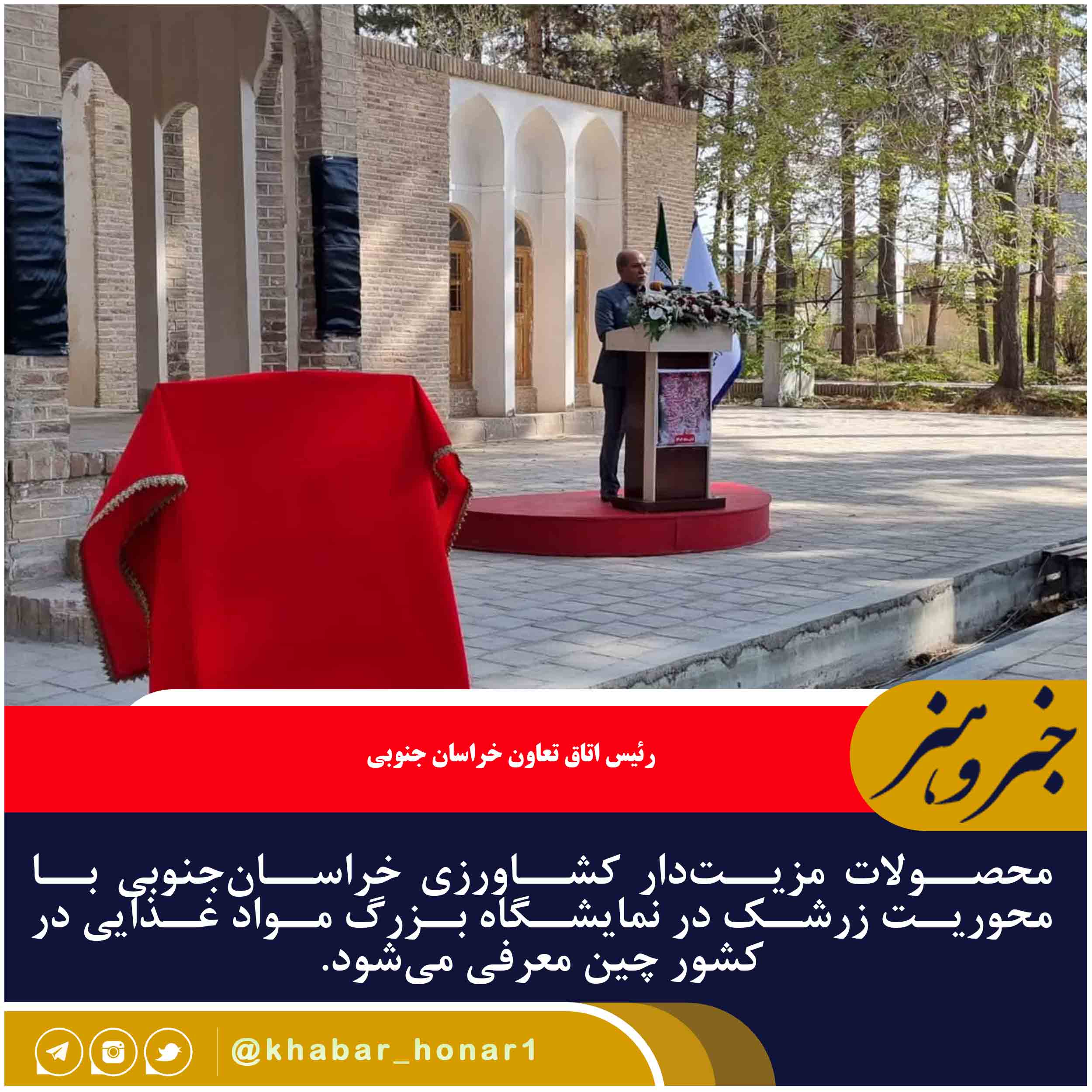 -رئیس اتاق تعاون خراسان جنوبی، گفت: محصولات مزیت‌دار کشاورزی خراسان‌جنوبی با محوریت زرشک در نمایشگاه بزرگ مواد غذایی در کشور چین معرفی می‌شود.