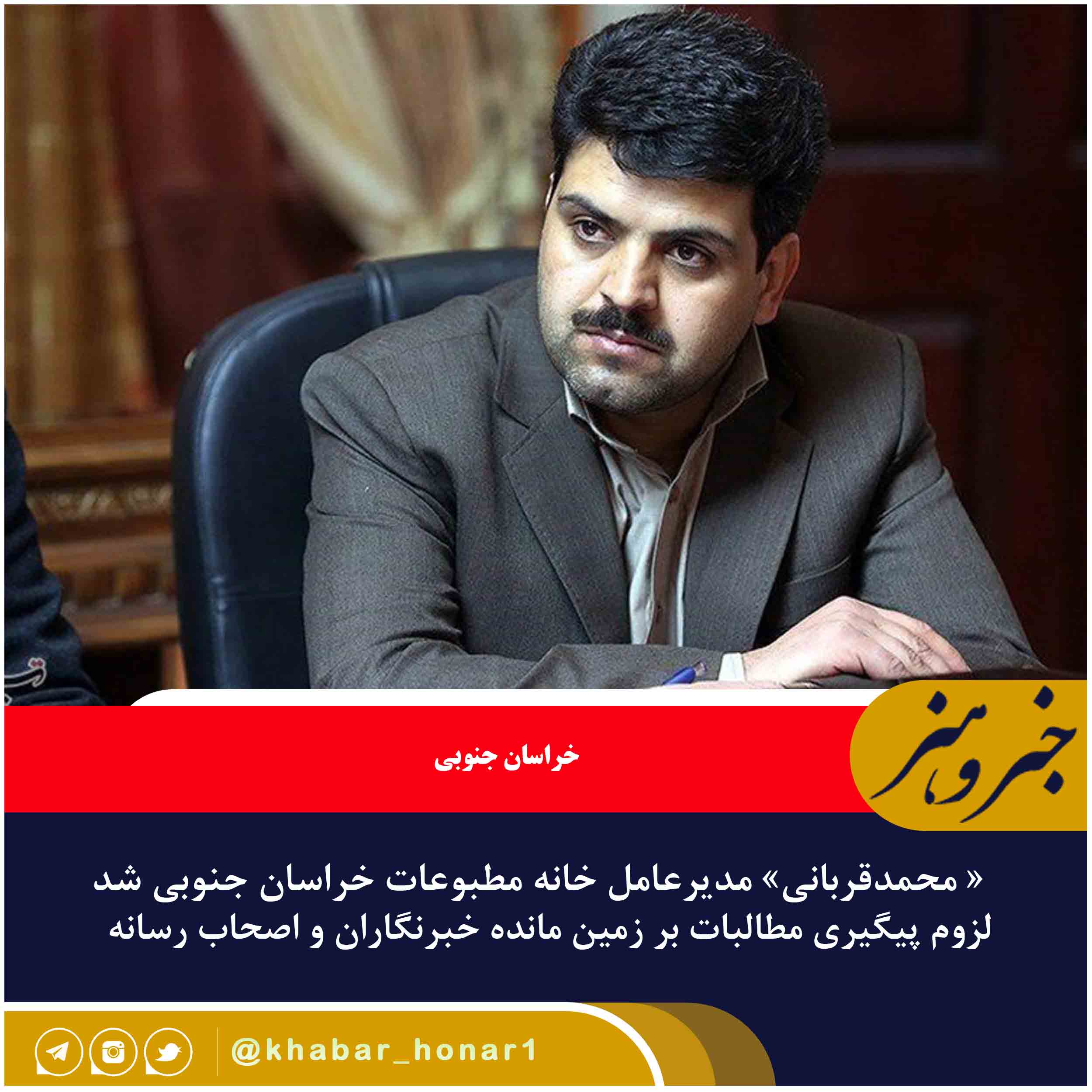 محمد قربانی در اولین جلسه هیات مدیره خانه مطبوعات خراسان جنوبی که در سال جدید برگزار شد، به عنوان مدیرعامل خانه مطبوعات خراسان جنوبی انتخاب شد.