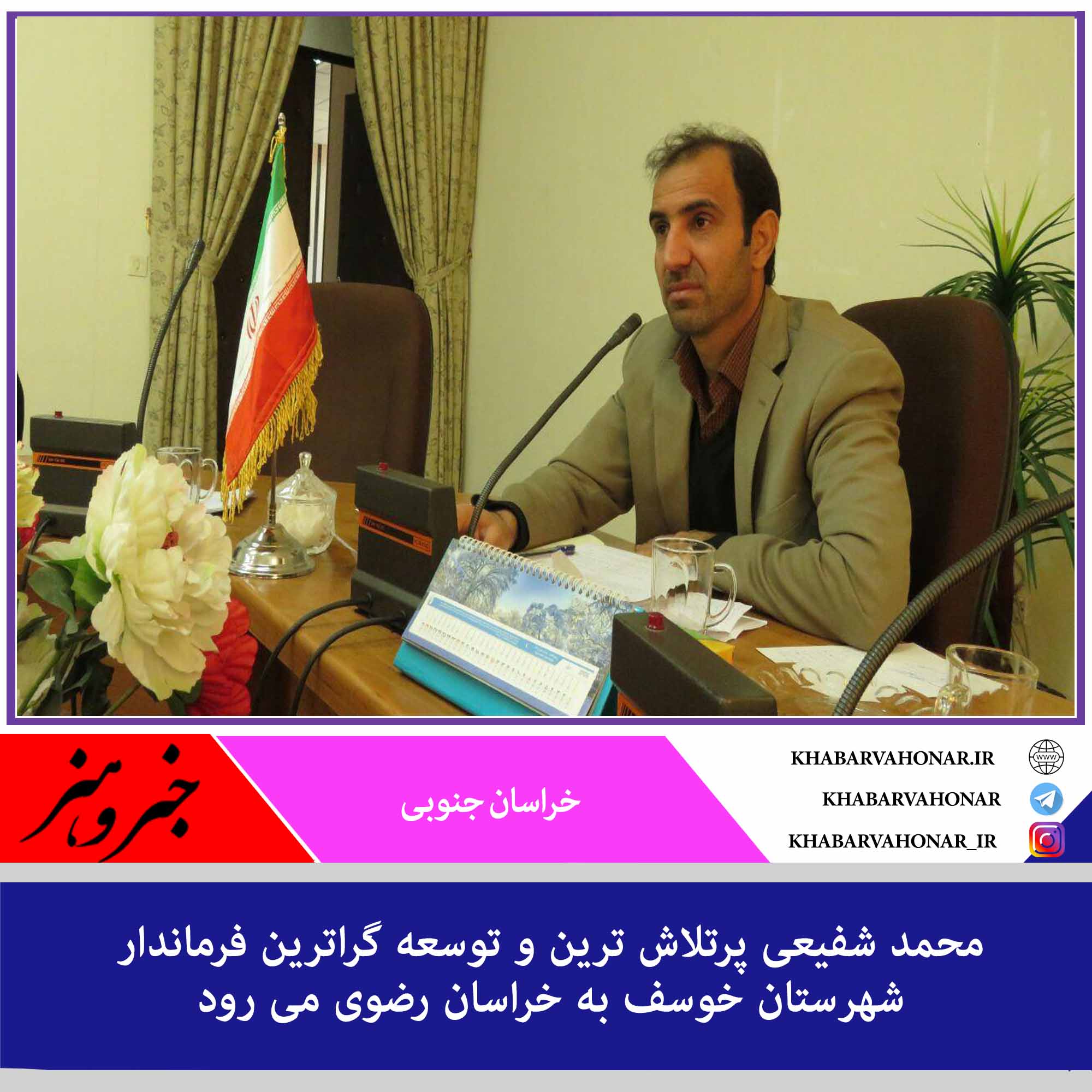 ?محمد شفیعی فرماندار بومی شهرستان خوسف بالاخره امروز می رود فرمانداری که بیشترین کار اقتصادی و زیر بنایی در شهرستان خوسف را از بدو تاسیس این شهرستان تا کنون رقم زده است و نتیجه اقداماتش در حال حاضر و آینده ایی نچندان دور به ثمر خواهد نشست در زمان تصدی وی بیشترین سرمایه گذاری خارجی در این شهرستان در استان رقم خورده است، او از روزی که آمد تحت فشار برخی اربابان قدرت در استان بود و حملات رسانه ای زیادی به او میشد ،هرچند او رابطه خوبی با همشهریان خود در تمام روستاها وشهرها داشت وتلاش زیادی کرد وعلی رغم برخی مشکلات ،در بسیاری از مسائل حوزه مدیریتی خود، خوب و بالاتراز تراز بسیاری از فرمانداران دولت تدبیر وامید عمل کرد ،اما در نهایت به استانداری خراسان رضوی خواهد رفت وجای خود را به مهندس آخوندی خواهد داد که به عکس شفیعی ،روزی که رفت ،انتظار این بود که خیلی زود برگردد…