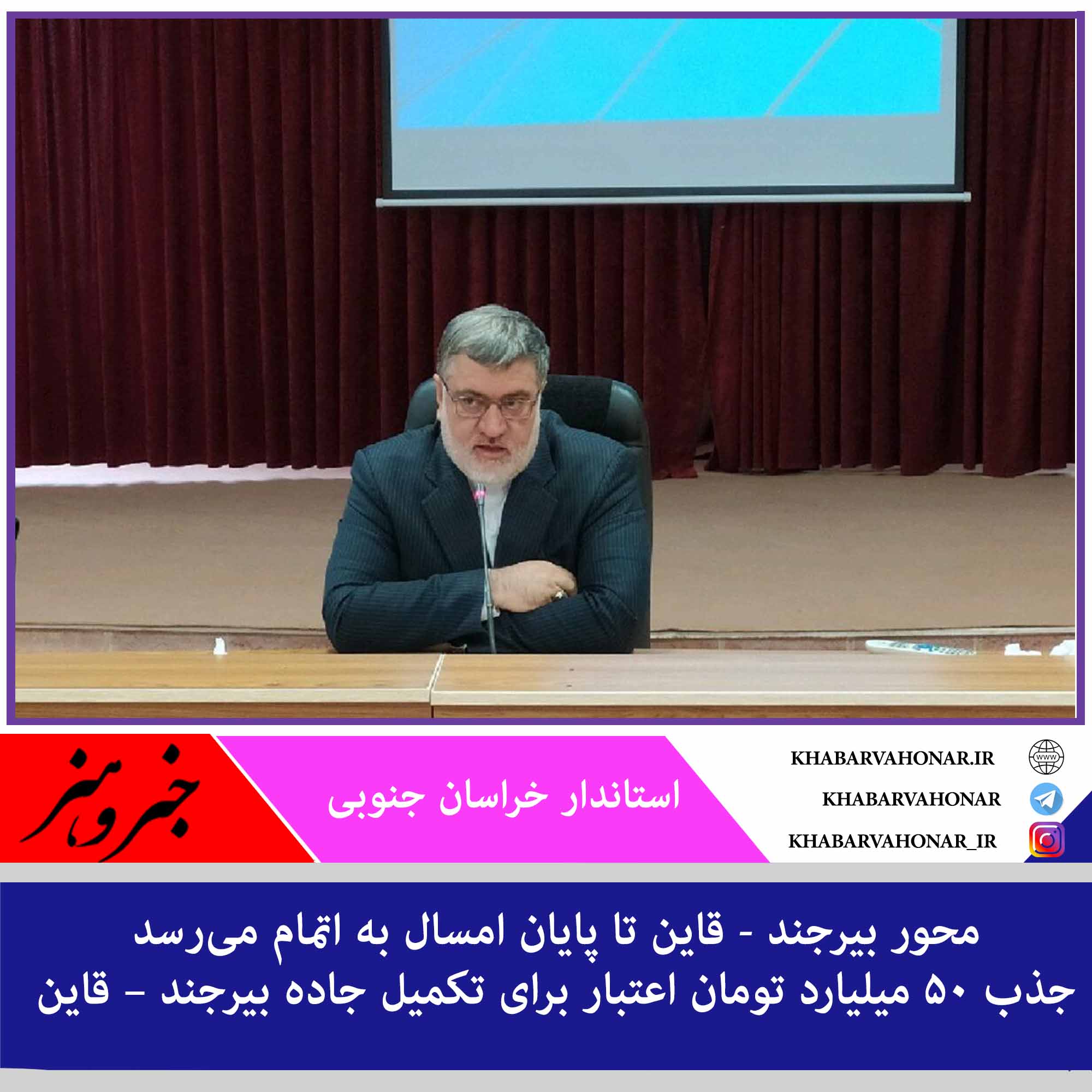 استاندار خراسان جنوبی گفت: با توجه به پیگیریهای صورت گرفته و اختصاص اعتبارات لازم، محور بیرجند – قاین حداکثر تا پایان سال جاری به اتمام میرسد. جذب ۵۰ میلیارد تومان اعتبار برای تکمیل جاده بیرجند – قاین
