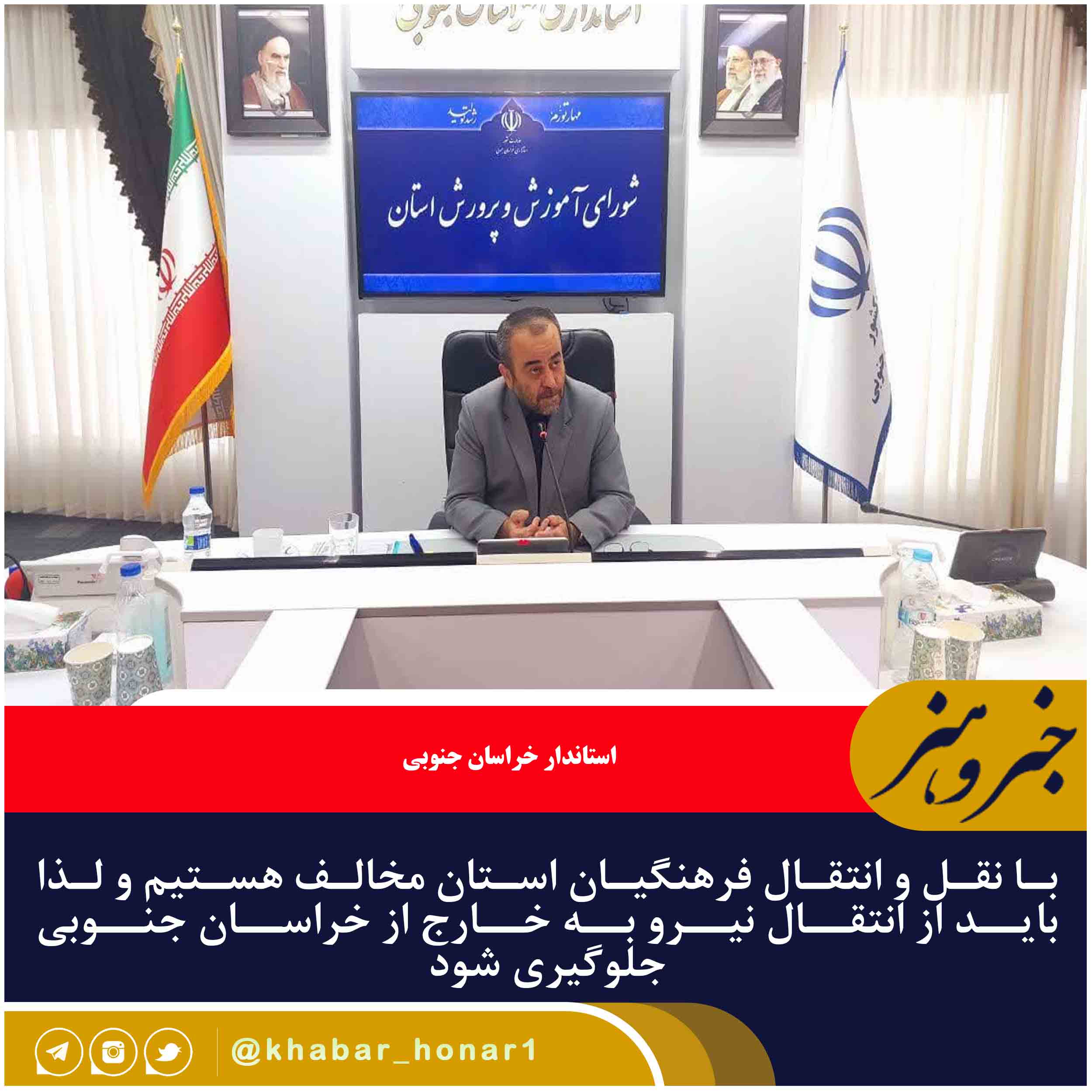 استاندار خراسان جنوبی گفت: با نقل و انتقال فرهنگیان استان مخالف هستیم و لذا باید از انتقال نیرو به خارج از خراسان جنوبی جلوگیری شود.