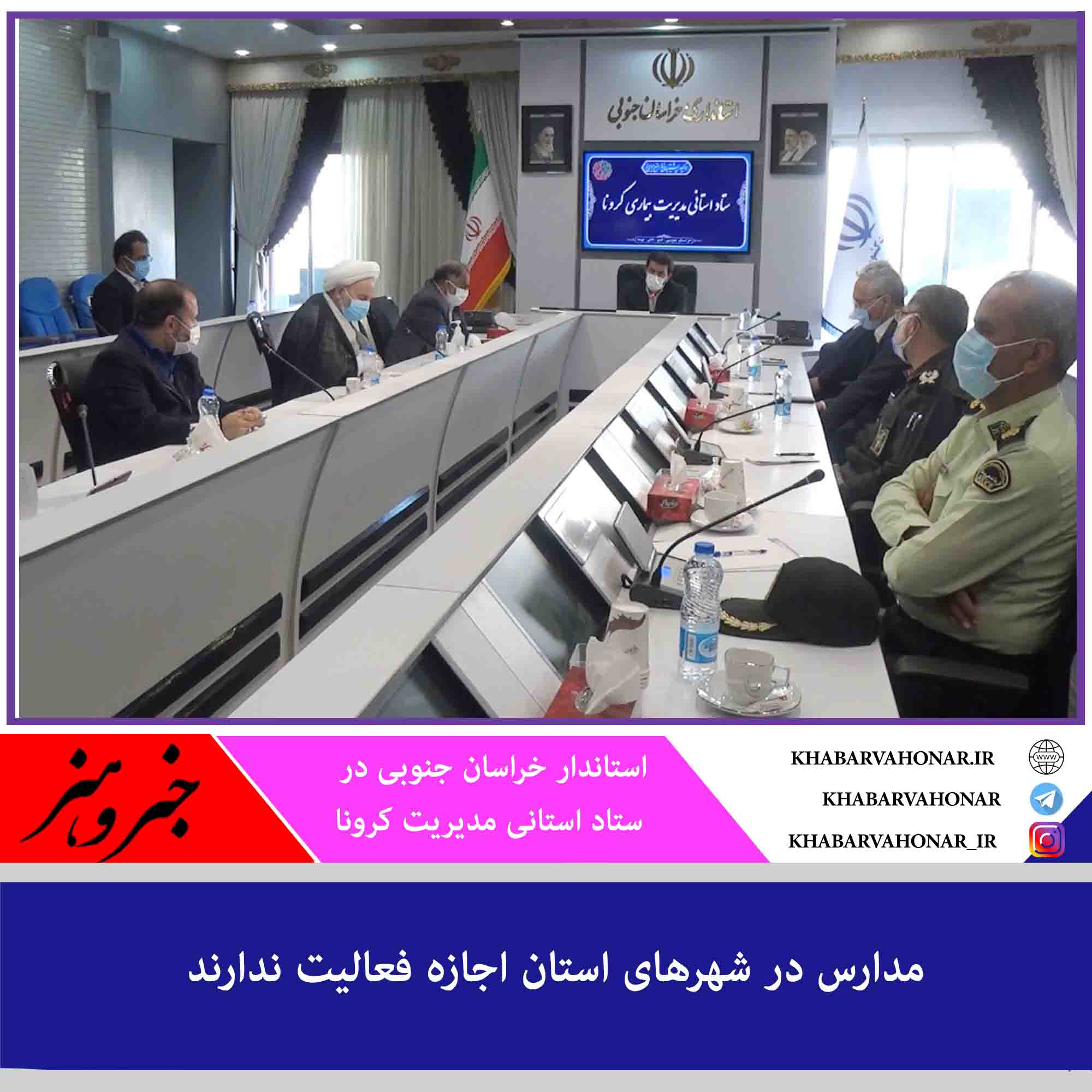?استاندار خراسان جنوبی در ستاد استانی مدیریت کرونا گفت: هیچ مدرسه ای در شهرها مجاز به فعالیت نیست و تنها مدارس روستایی و عشایری زیر ۱۵ نفر و کارگاه های فنی و حرفه ای و کاردانش می توانند فعالیت کنند.