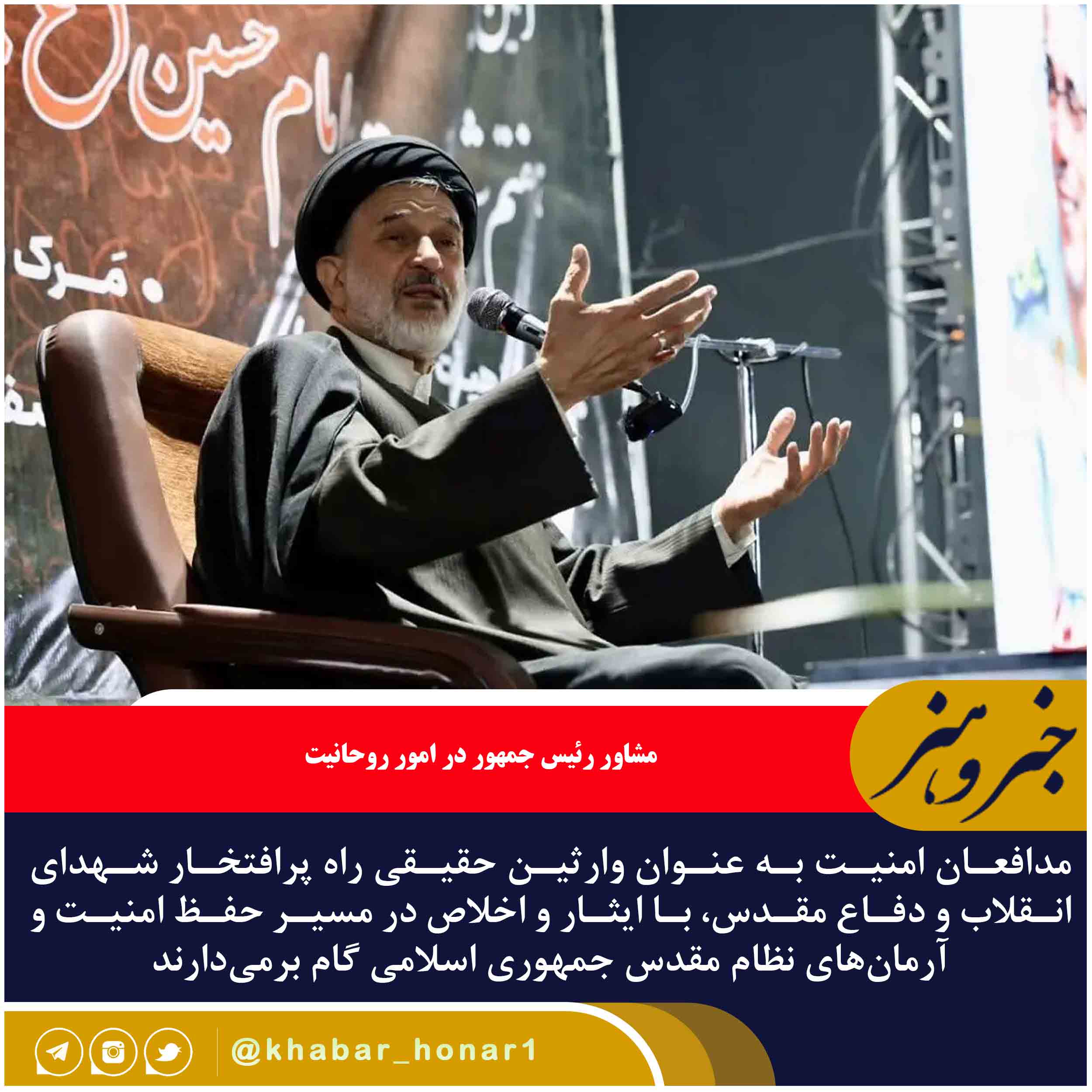 مشاور رئیس جمهور در امور روحانیت گفت: مدافعان امنیت به عنوان وارثین حقیقی راه پرافتخار شهدای انقلاب و دفاع مقدس، با ایثار و اخلاص در مسیر حفظ امنیت و آرمان‌های نظام مقدس جمهوری اسلامی گام برمی‌دارند.