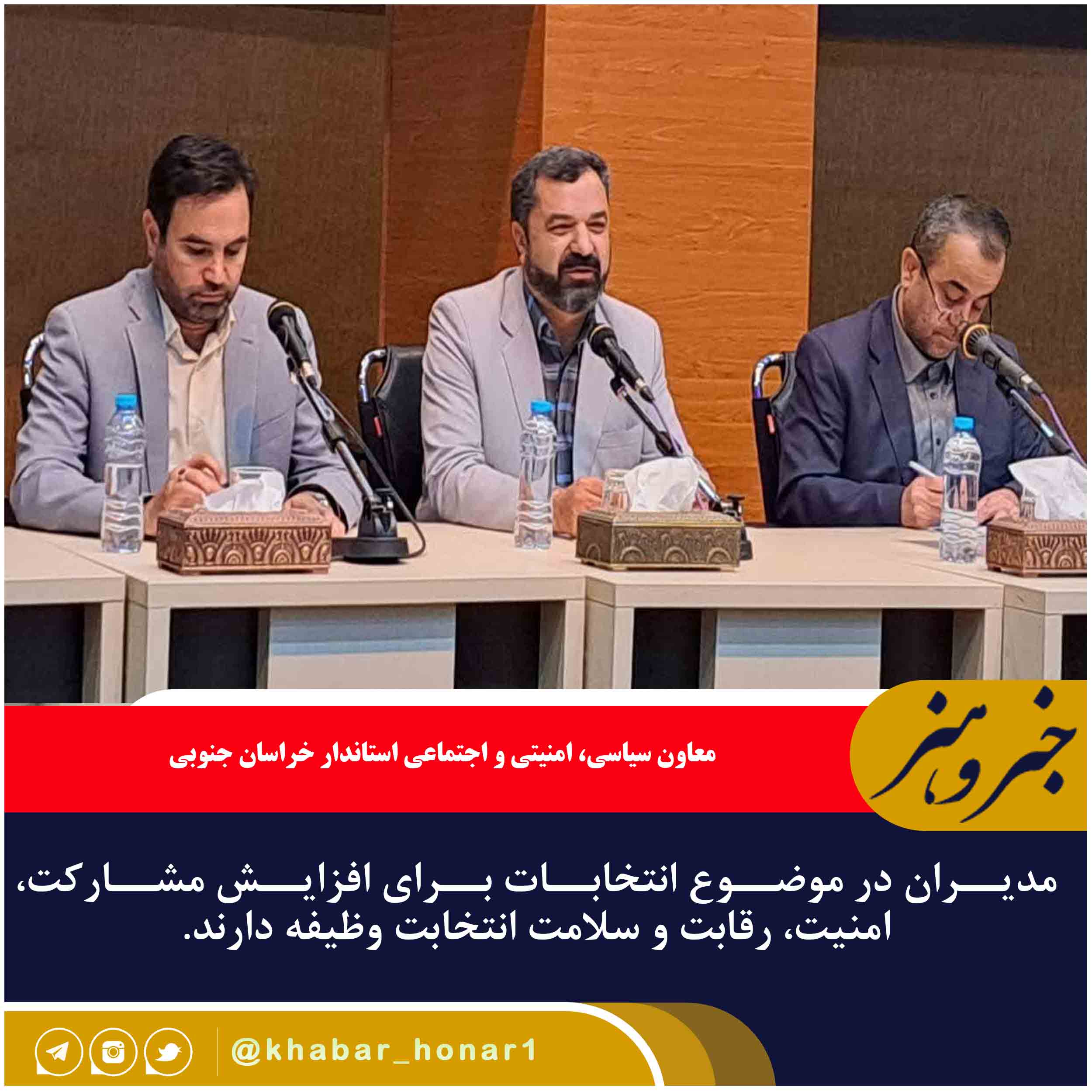 ?معاون سیاسی، امنیتی و اجتماعی استاندار خراسان جنوبی با اشاره به اهمیت موضوع انتخابات گفت: مدیران در موضوع انتخابات برای افزایش مشارکت، امنیت، رقابت و سلامت انتخابت وظیفه دارند.