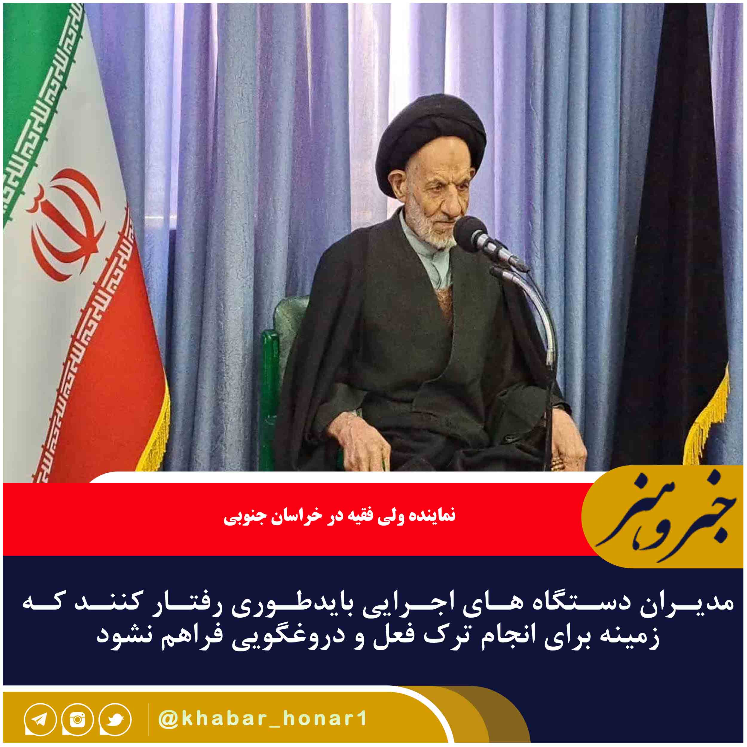 ?به گفته وی؛ مدیران دستگاه های اجرایی باید زیرمجموعه خود را طوری دوست بدارند که زمینه برای انجام ترک فعل و دروغگویی فراهم نشود.