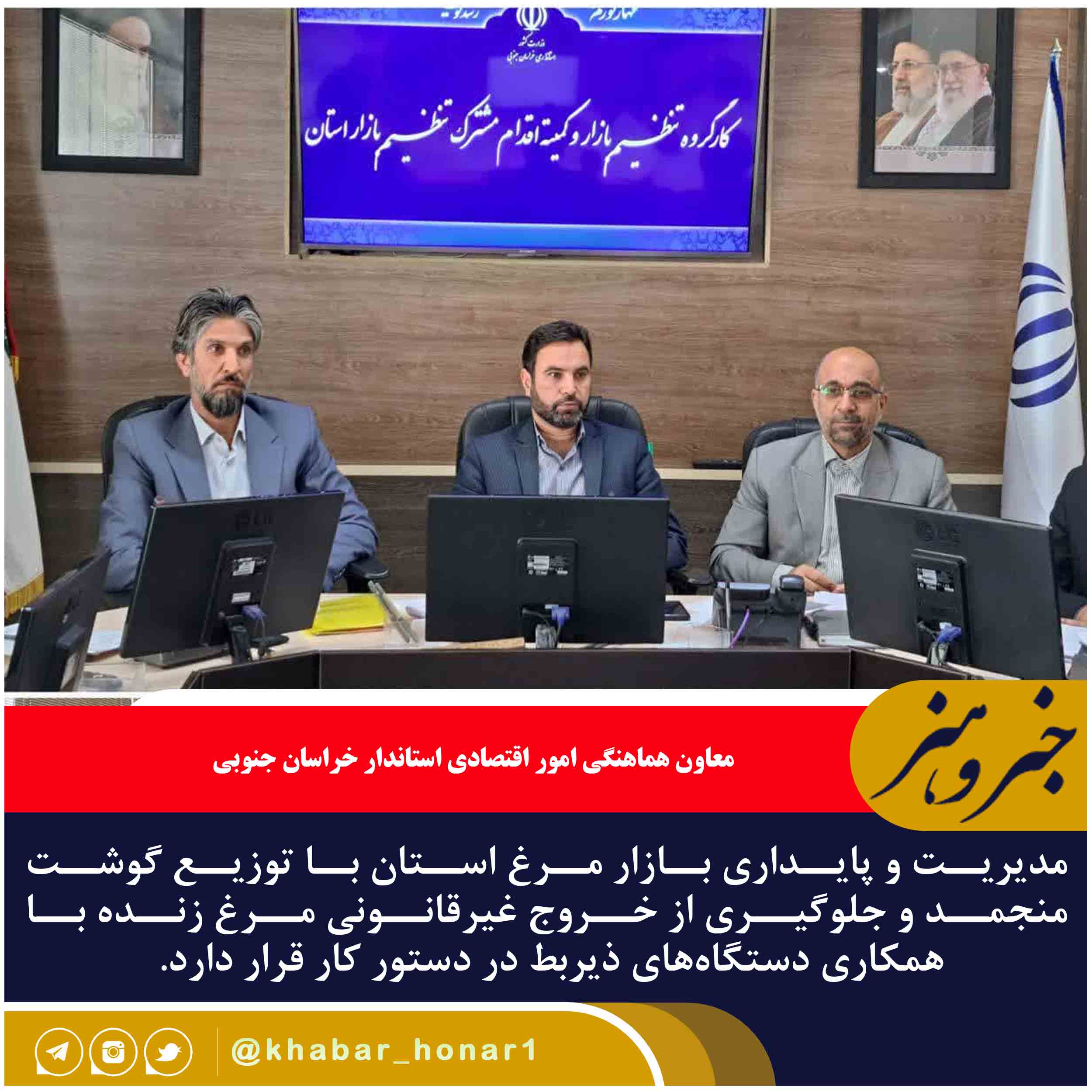 معاون هماهنگی امور اقتصادی استاندار خراسان جنوبی گفت: مدیریت و پایداری بازار مرغ استان با توزیع گوشت منجمد و جلوگیری از خروج غیرقانونی مرغ زنده با همکاری دستگاههای ذیربط در دستور کار قرار دارد.