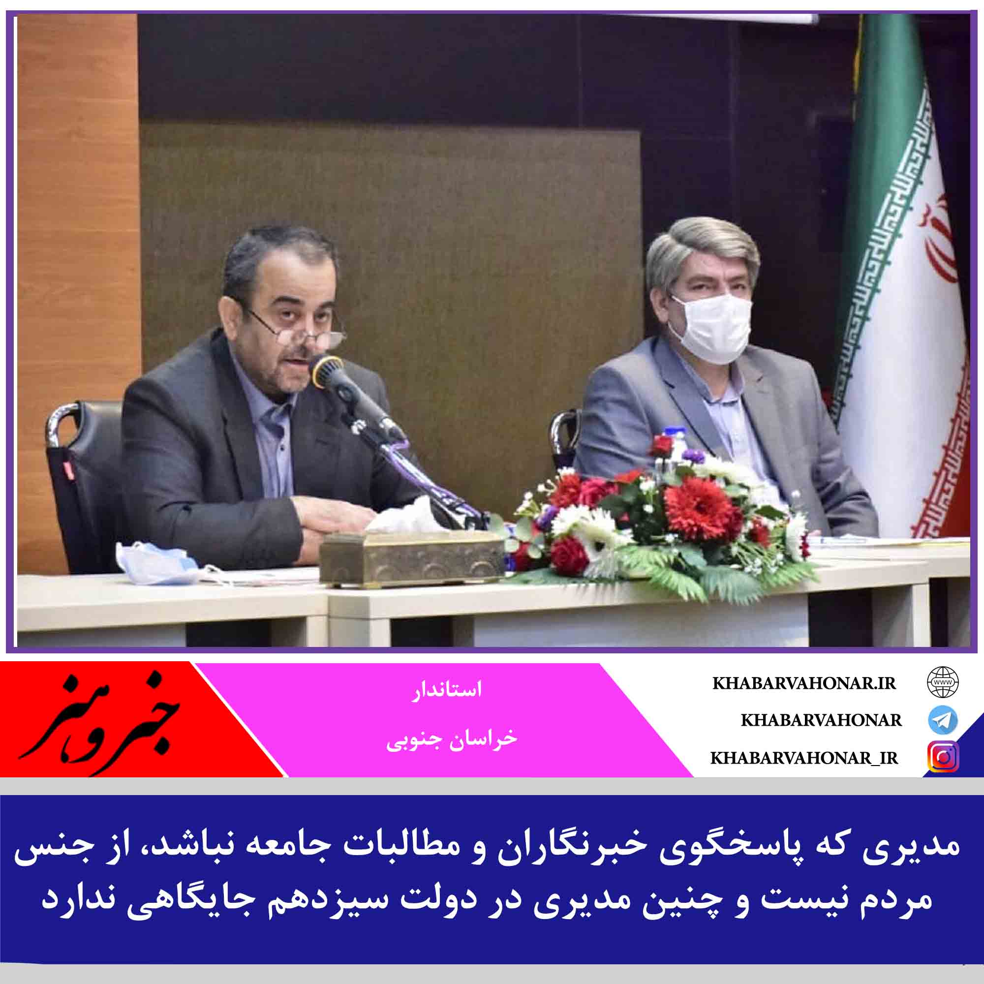 استاندار خراسان جنوبی گفت: مدیری که پاسخگوی خبرنگاران و مطالبات جامعه نباشد، از جنس مردم نیست و چنین مدیری در دولت سیزدهم جایگاهی ندارد.