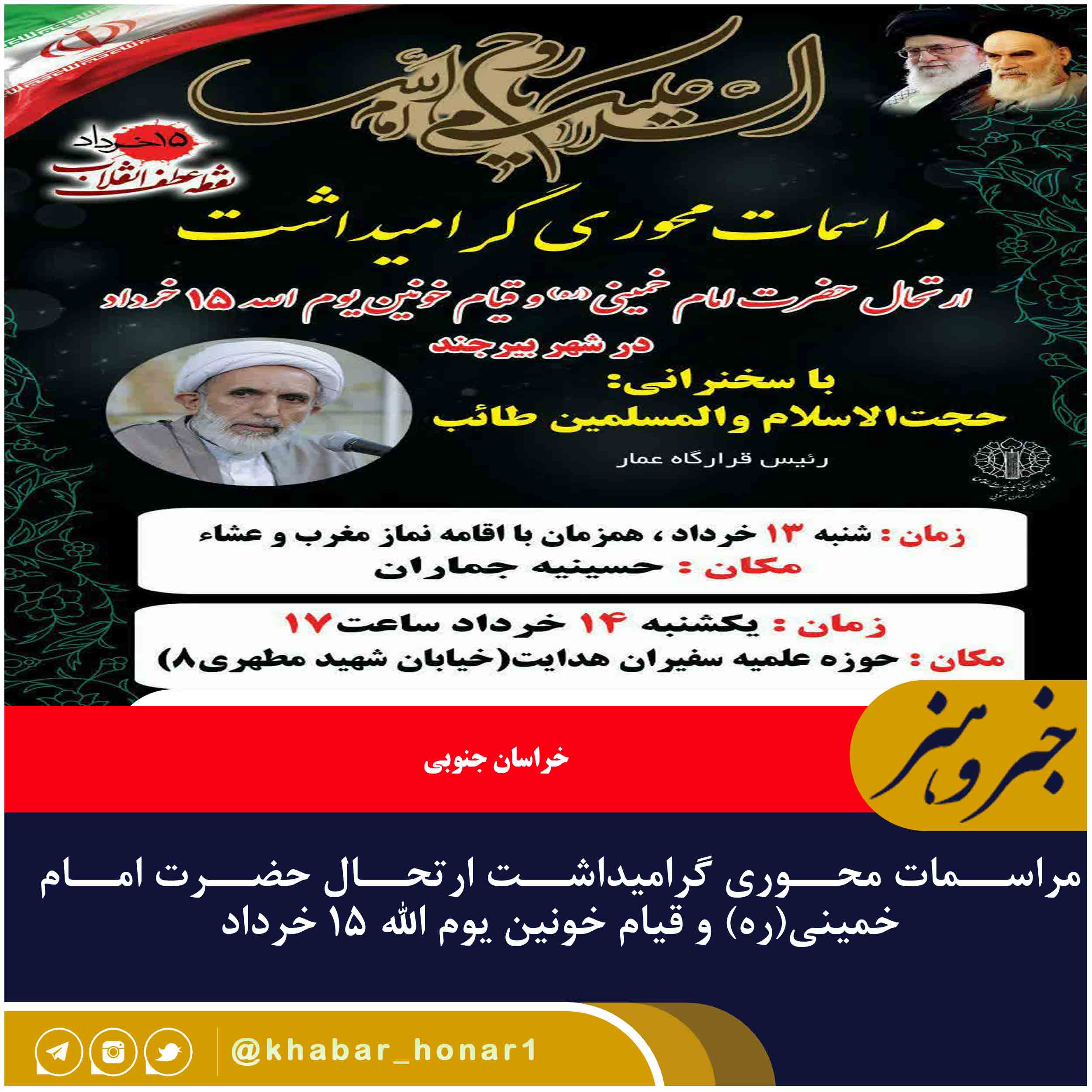 مراسمات محوری گرامیداشت ارتحال حضرت امام خمینی(ره) و قیام خونین یوم الله ۱۵ خرداد