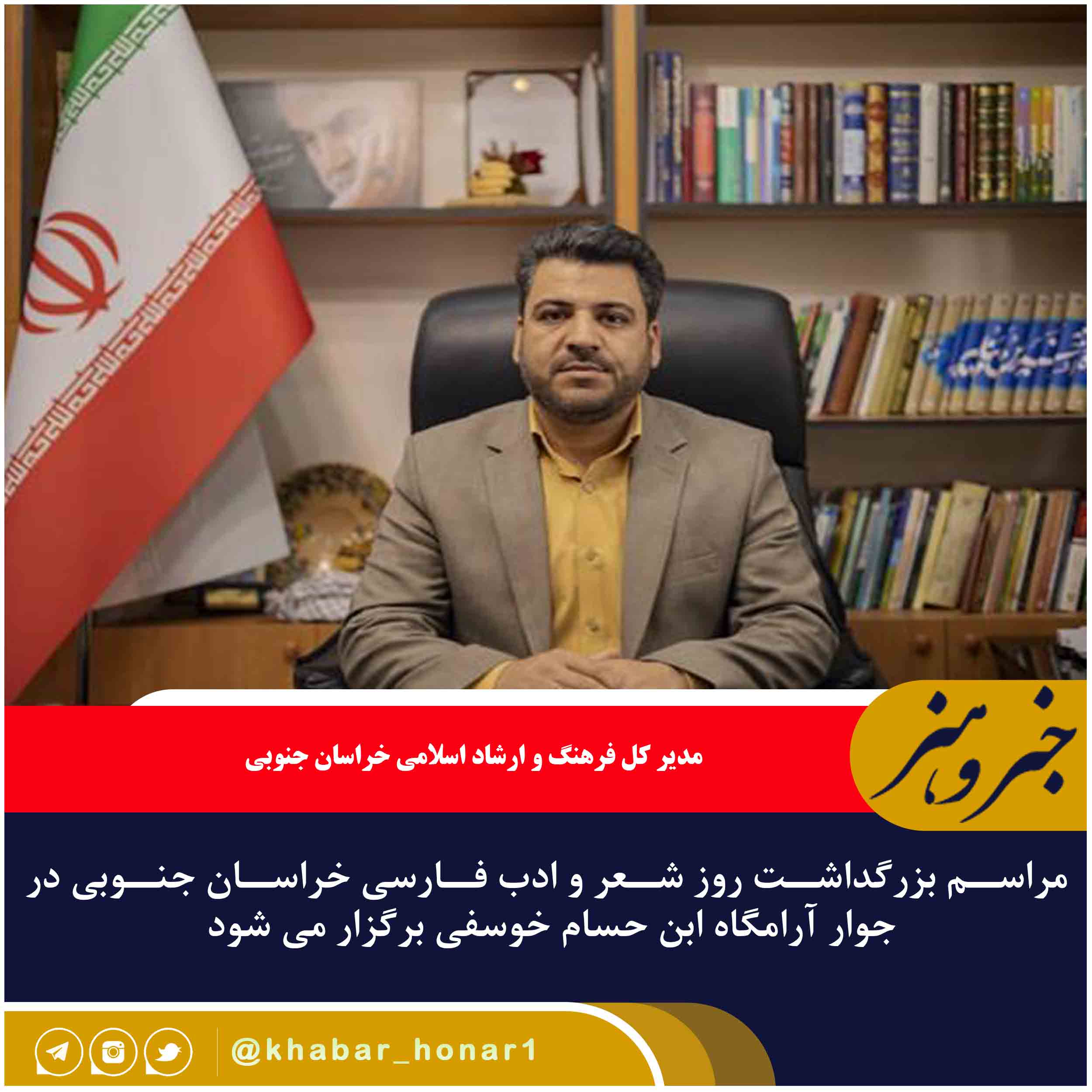مدیر کل فرهنگ و ارشاد اسلامی خراسان جنوبی گفت: مراسم استانی بزرگداشت استاد شهریار، شاعر معاصر و روز شعر و ادب فارسی، ۲۹ شهریورماه در جوار آرامگاه ابن حسام خوسفی، شاعر قرن نهم برگزار می شود.علی فرخنده با اشاره به روز ملی شعر و ادب فارسی بیان کرد: بیست و هفتم شهریور ماه همزمان با سالروز درگذشت شهریار، شاعر معاصر ایرانی، با تصویب شورای عالی انقلاب فرهنگی، روز ملی شعر و ادب پارسی، نامیده شده است.