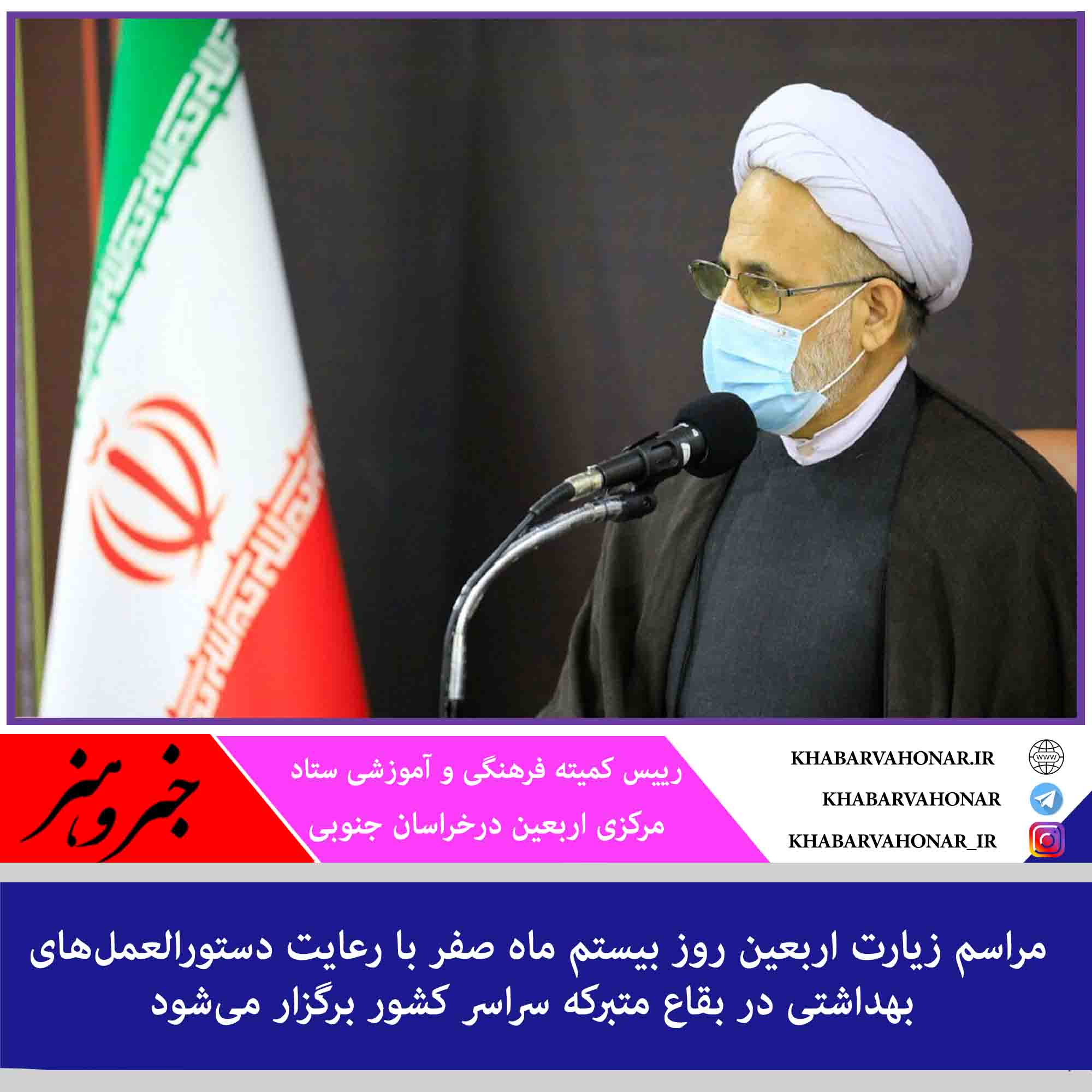 رییس کمیته فرهنگی و آموزشی ستاد مرکزی اربعین گفت: مراسم زیارت اربعین روز بیستم ماه صفر با رعایت دستورالعملهای بهداشتی در بقاع متبرکه سراسر کشور برگزار میشود.