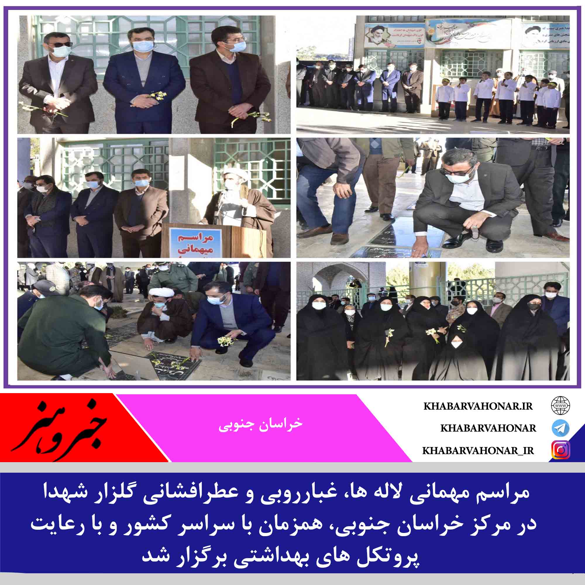 ?مراسم مهمانی لاله ها، غبارروبی و عطرافشانی گلزار شهدا در مرکز استان، همزمان با سراسر کشور و با رعایت پروتکل های بهداشتی برگزار شد.