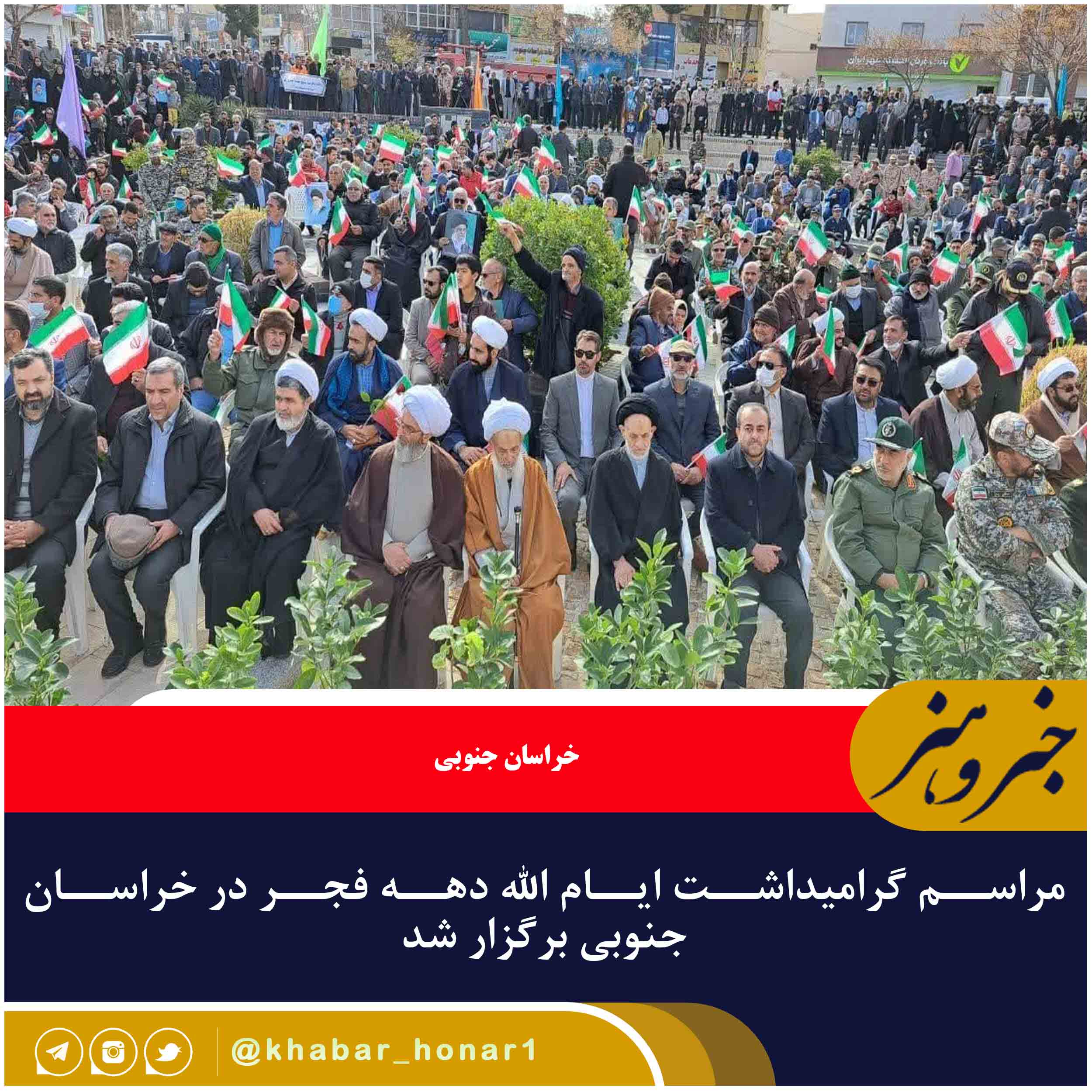 ؛ آیین گرامیداشت آغاز دهه فجر انقلاب اسلامی و سالروز ورود تاریخی امام خمینی (ره) به وطن روز پنجشنبه در بیرجند مرکز استان خراسان جنوبی، با حضور نماینده ولی فقیه در خراسان جنوبی، استاندار و جمعی از مسئولان و قشرهای مختلف مردم در میدان امام خمینی (ره) بیرجند برگزار شد.