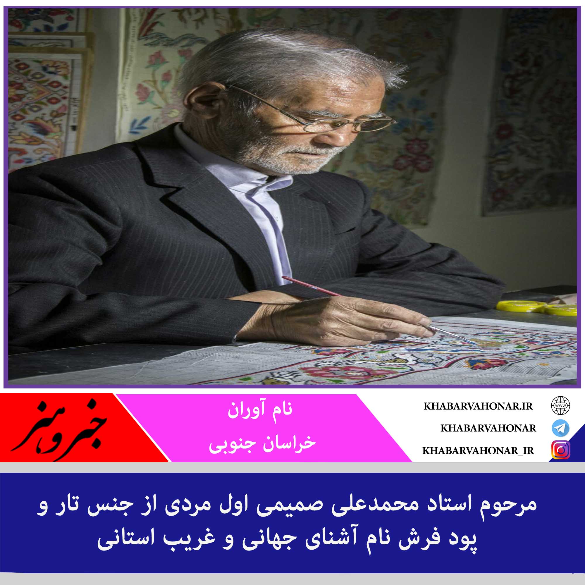 استاد محمد علی صمیمی اول از طراحان فرش استان خراسان جنوبی است که در عداد پر سابقه ترین طراحان فرش کشور قرار دارد. او در سال ۱۳۱۴ در روستای سرچاه تازیان که از روستاهای منطقه مهم فرشبافی ناحیه درخش می باشد در خانواده ای فرش باف به دنیا آمد. از آنجا که مناطق مود و درخش ( شهرفعلی قهستان ) و حومه آنها از مناطق مهم فرشبافی ایران بوده است، طبیعتاً هنرمندان و استاد کاران زیادی را درخود پرورانده است. استاد صمیمی اول، به رسم دهه های پیشین، به سبب نبود مدرسه در محل، ازشش سالگی بعنوان فرشباف ورود خود به هنر فرش ایران را آغازنمود که تا جوانی ادامه داشته است. باتوجه به وضعیت پررونق فرش منطقه درخش و شهرستان بیرجند، بسیاری از خانواده های فرشباف، خود رنگرزی خامه های مورد نیاز را انجام می دادند. استاد صمیمی اول، ازسن ۱۷ سالگی بعنوان رنگرز گیاهی فعالیت دیگری را در فرش آغاز نمود. وی تا سال ۱۳۵۱ وبه مدت ۲۰ سال در کنار کار طراحی فرش، از رنگرز های گیاهی فعال منطقه نیز بوده است. از آنجا که سن جوانی سن شکوفایی استعدادهای بسیاری از افراد هست، وی به سبب علاقه به طراحی، فعالیت طراحی خودرا از طراحی پرده های تزئینی منازل به منظور سوزن دوزی یا گلدوزی آغاز کرد. با توجه به قرابت و شباهت این نقوش با نقوش فرش به سمت نقشه فرش نیز رفت. بر اساس رویه رایج طراحی فرش کشور، استاد صمیمی ابتدا از نقطه گذاری طرحها آغاز کرد و برای نقشه کشی فرش تمرینهای زیادی را نزد مرحوم محمد حسن سرچاهی ( ازنقاشان فرش منطقه و شوهر خواهر وی) انجام داده است، به سبب علاقه زیاد، در کنار رنگرزی، به سبب ذوق و قریحه وافر طراحی و نقاشی فرش را نیز فرا گرفت و تا حدی پیش رفت که در جوانی و در دهه ۴۰ درطراحی فرش بیرجند صاحب نام گردید. به سبب این شهرت و توانایی ترسیم نقوش متنوع قالی، همزمان با تاسیس شرکت سهامی فرش شعبه بیرجند در سال ۱۳۴۶ ازسوی آن شرکت و همراه با استاد توانمند آقای جمشید بیک مودی، دعوت به همکاری شد و فعالیت طراحی فرش را درمرحله ای جدید آغاز نمود.