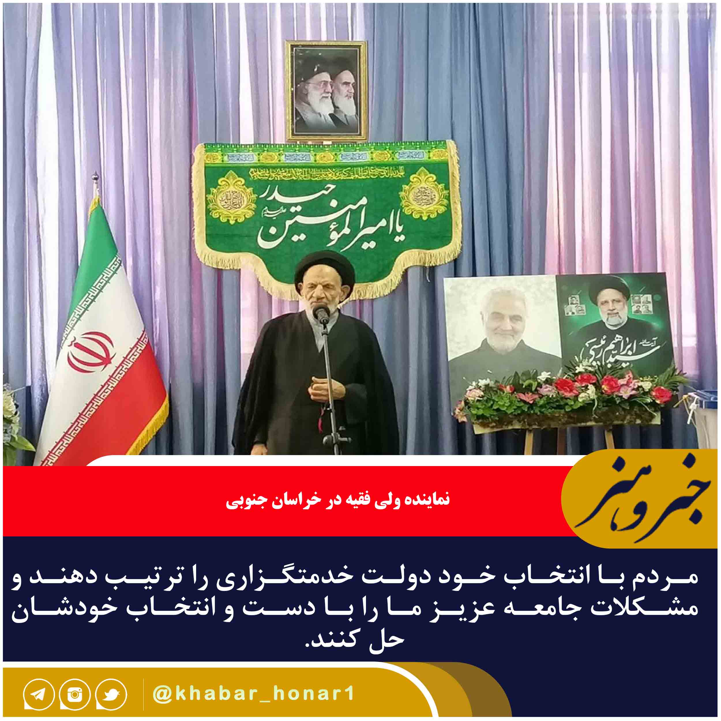 نماینده ولی فقیه در خراسان جنوبی و امام جمعه بیرجند گفت: مردم با انتخاب خود دولت خدمتگزاری را ترتیب دهند و مشکلات جامعه عزیز ما را با دست و انتخاب خودشان حل کنند.