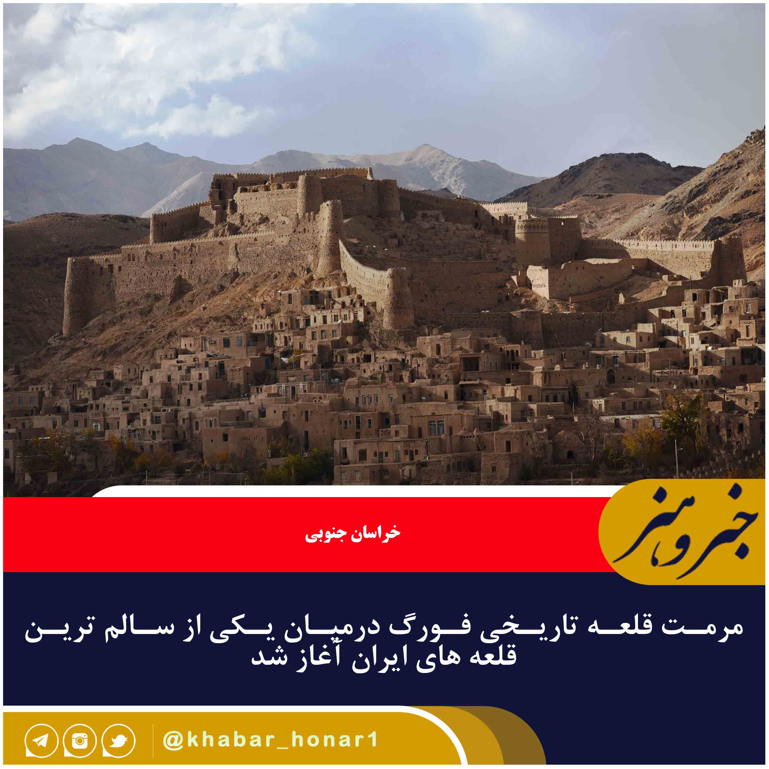 مسئول میراث فرهنگی، گردشگری و صنایع دستی شهرستان درمیان گفت: مرمت بخشی از قلعه تاریخی فورگ درمیان یکی از سالمترین قلعه های ایران در روستای هدف گردشگری فورگ با تخصیص اعتبارات لازم آغاز شد.