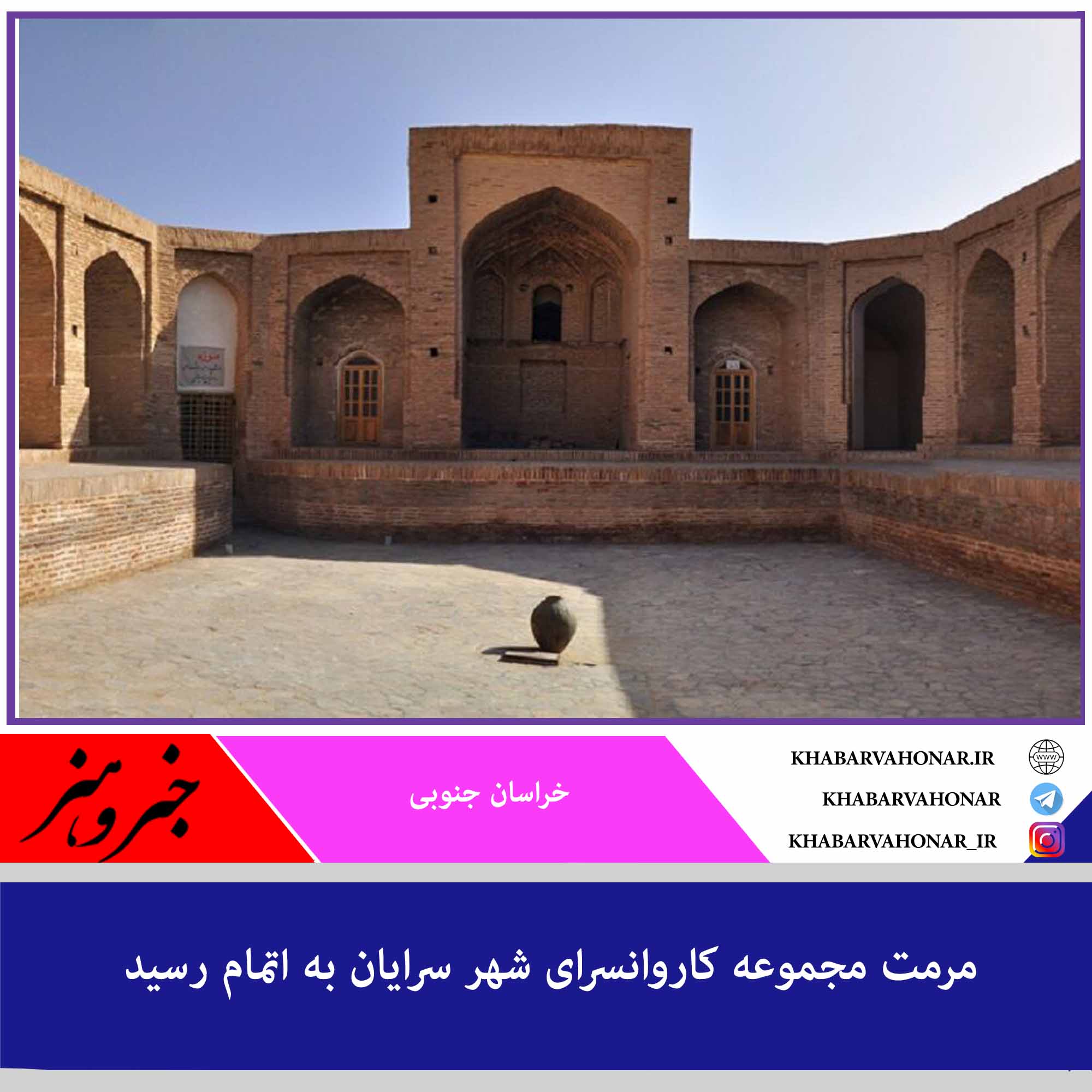 معاون میراث فرهنگی اداره کل میراث فرهنگی، گردشگری و صنایع دستی خراسان جنوبی گفت: مرمت و بهسازی مجموعه کاروانسرای شهر سرایان با اعتبار بیش از ۱۰ میلیارد ریال پایان یافت.