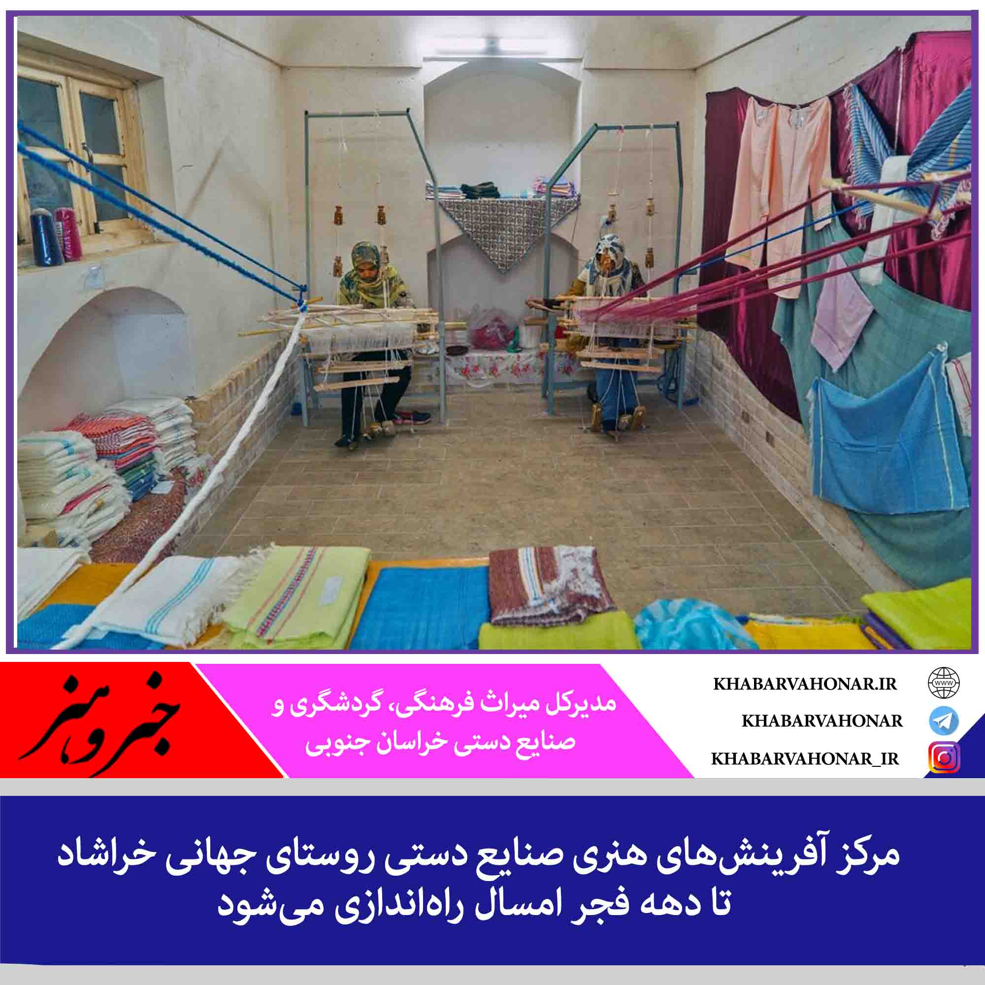 مدیرکل میراث فرهنگی، گردشگری و صنایع دستی خراسان جنوبی گفت: مرکز آفرینشهای هنری صنایع دستی روستای جهانی خراشاد تا دهه فجر امسال راهاندازی میشود.