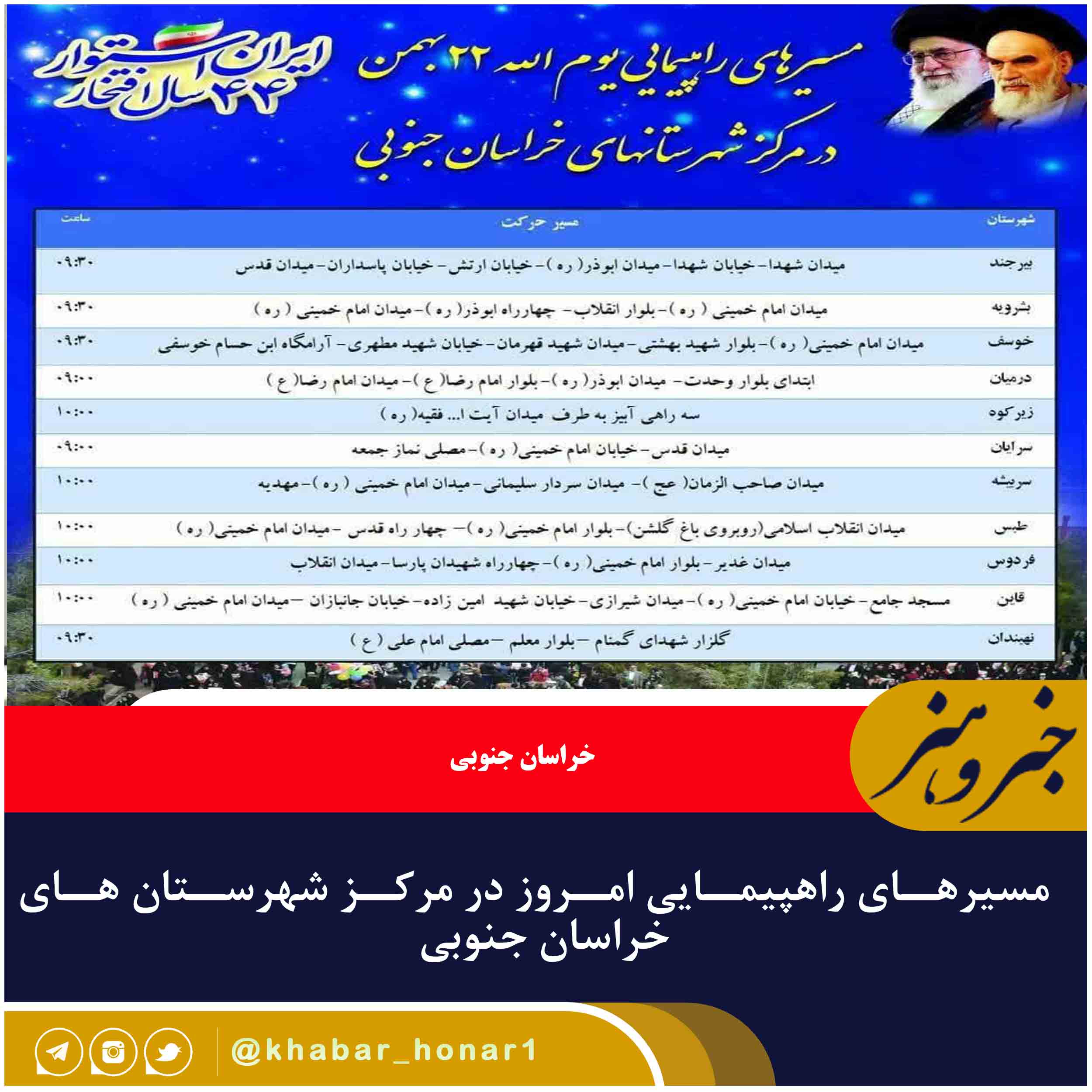 مسیرهای راهپیمایی امروز در مرکز شهرستان های خراسان جنوبی
