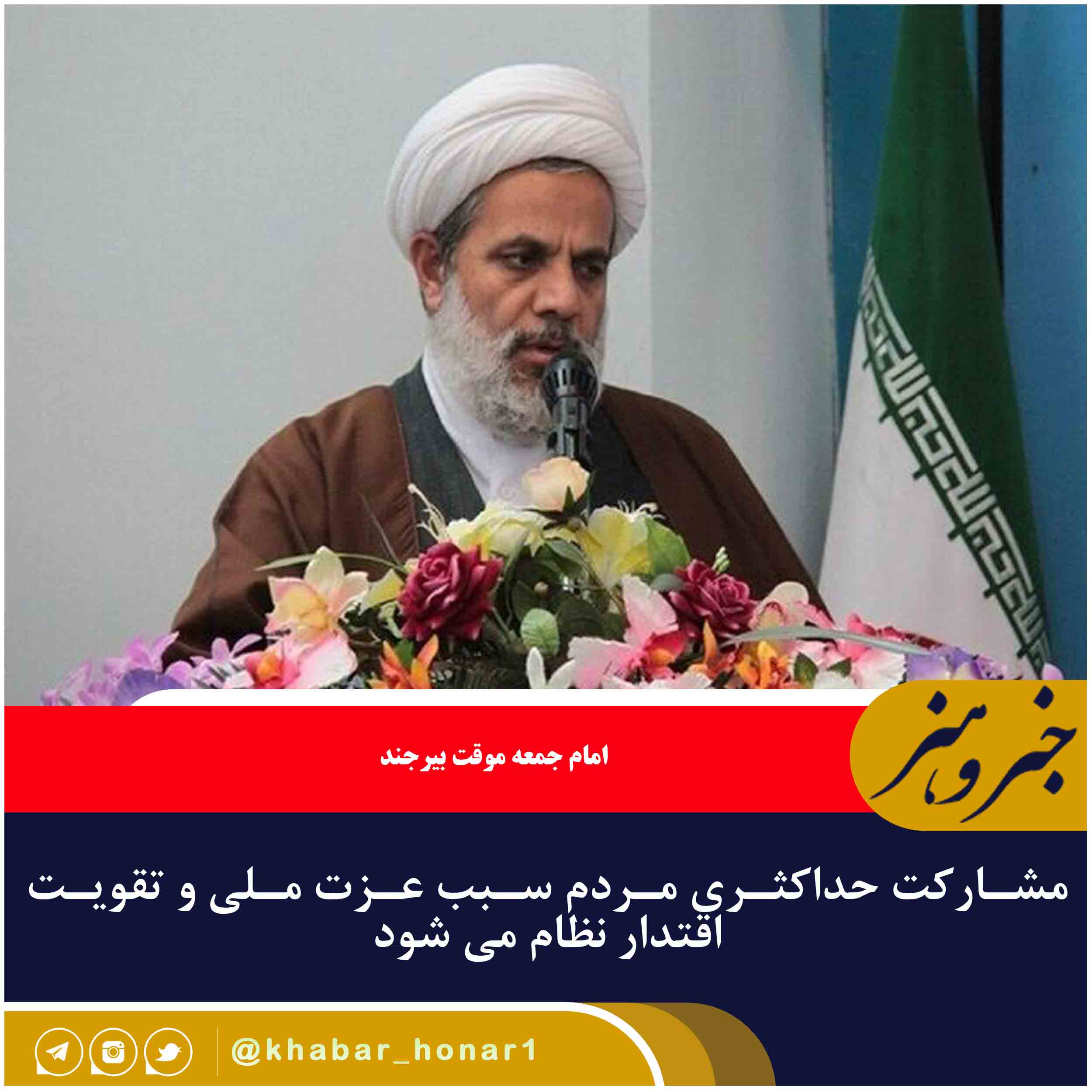امام جمعه موقت بیرجند با اشاره به بیانات رهبری اضافه کرد: مشارکت بالا در انتخاب مسؤول بعدی انعکاسی فوق العاده دارد بنابراین در انتخابات پیش رو اول مشارکت و بعد انتخاب اصلح مهم است.