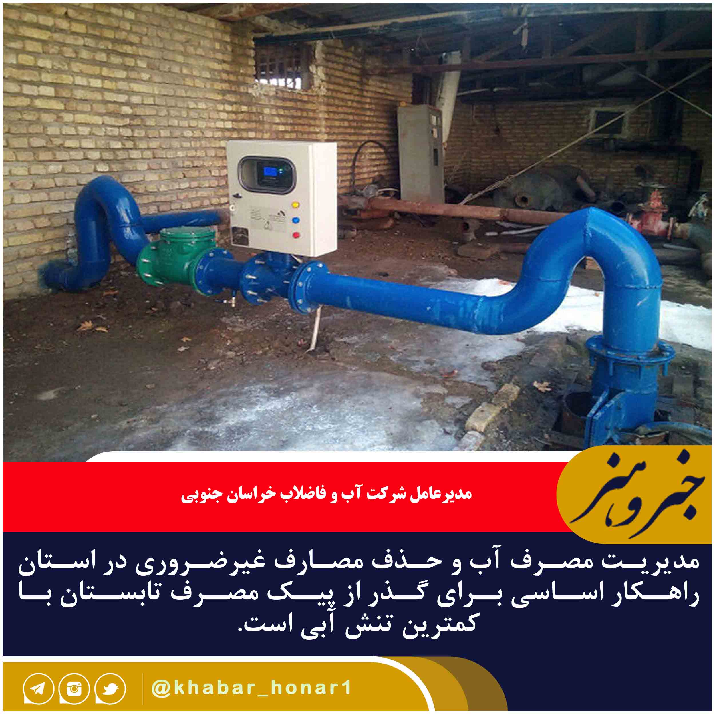 مدیرعامل شرکت آب و فاضلاب خراسان جنوبی گفت: مدیریت مصرف آب و حذف مصارف غیرضروری در استان راهکار اساسی برای گذر از پیک مصرف تابستان با کمترین تنش آبی است.