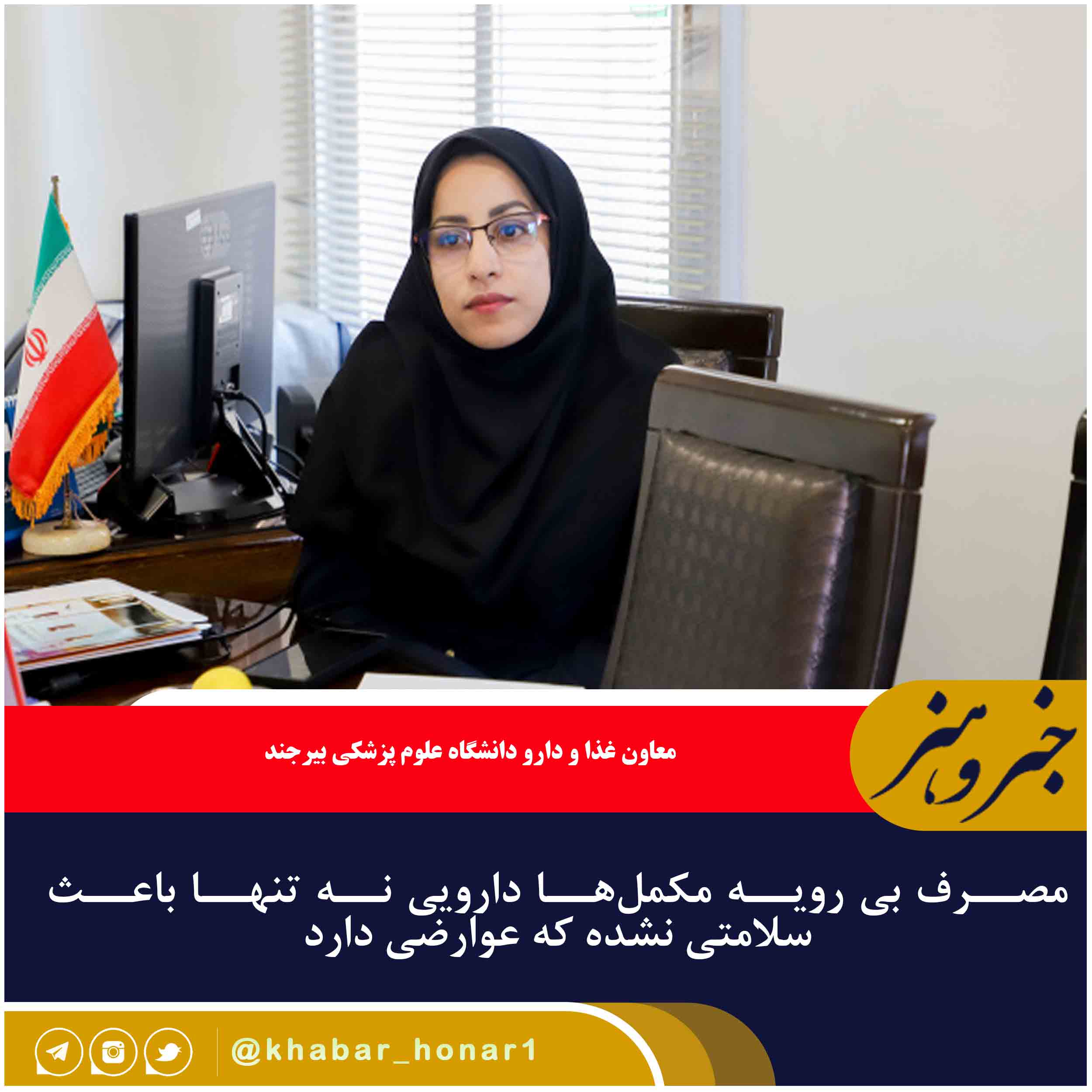 معاون غذا و دارو دانشگاه علوم پزشکی بیرجند گفت: مکملهای دارویی اگر از مکانهای غیرمجاز تهیه شده و یا طبق نظر پزشک مصرف نشوند عوارض خطرناکی دارند.
