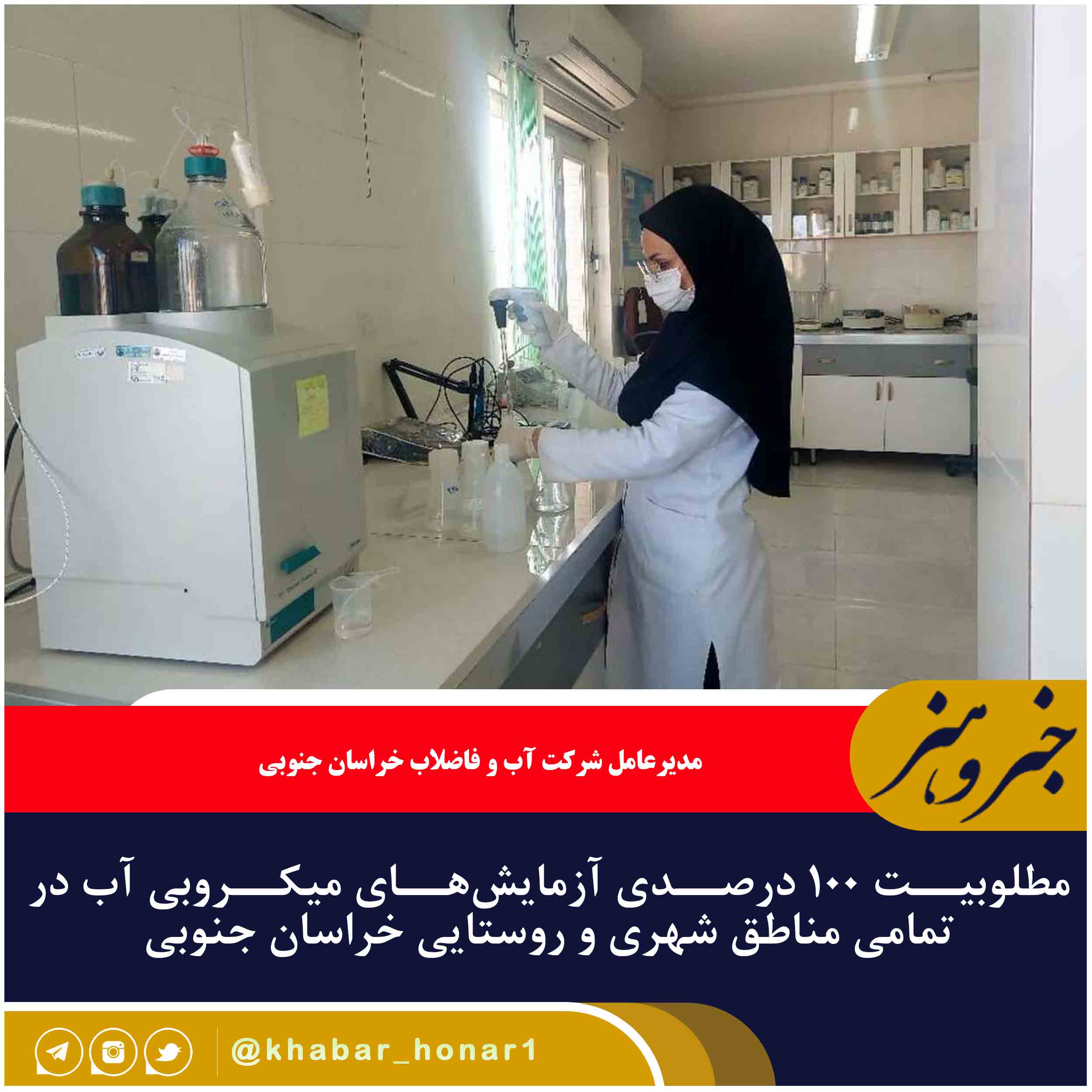 مدیرعامل شرکت آب و فاضلاب خراسان جنوبی از مطلوبیت ۱۰۰ درصدی آزمایشهای میکروبی آب در تمامی مناطق شهری و روستایی استان خبر داد.