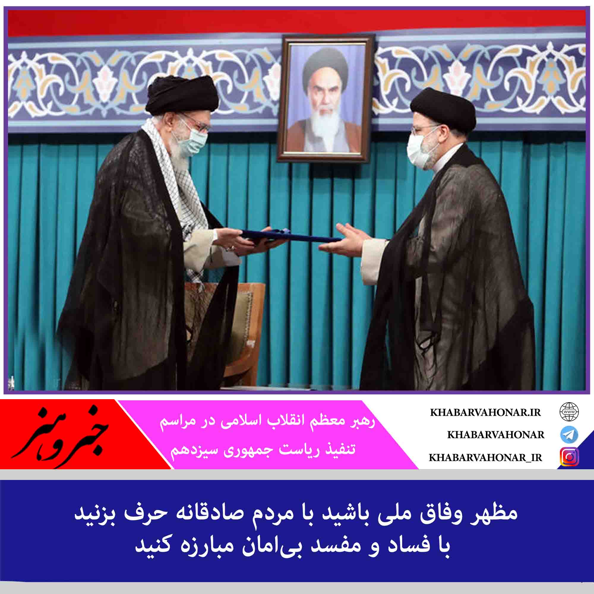 اکنون با تشکر از مردم عزیز و با پیروی از گزینش آنان، رأی به عالم فرزانه و خستگیناپذیر و کارآزموده و مردمی، جناب حجهالاسلام آقای سیدابراهیم رئیسی را تنفیذ و ایشان را به ریاست جمهوری اسلامی ایران منصوب میکنم و از خداوند متعال توفیق و سربلندی ایشان و همکارانشان را مسألت مینمایم و یادآوری میکنم که رأی ملت و تنفیذ اینجانب تا هنگامی است که مشی همیشگی ایشان در پیمودن صراط مستقیم اسلام و انقلاب ادامه داشته باشد که به فضل الهی چنین خواهد بود انشاءالله.