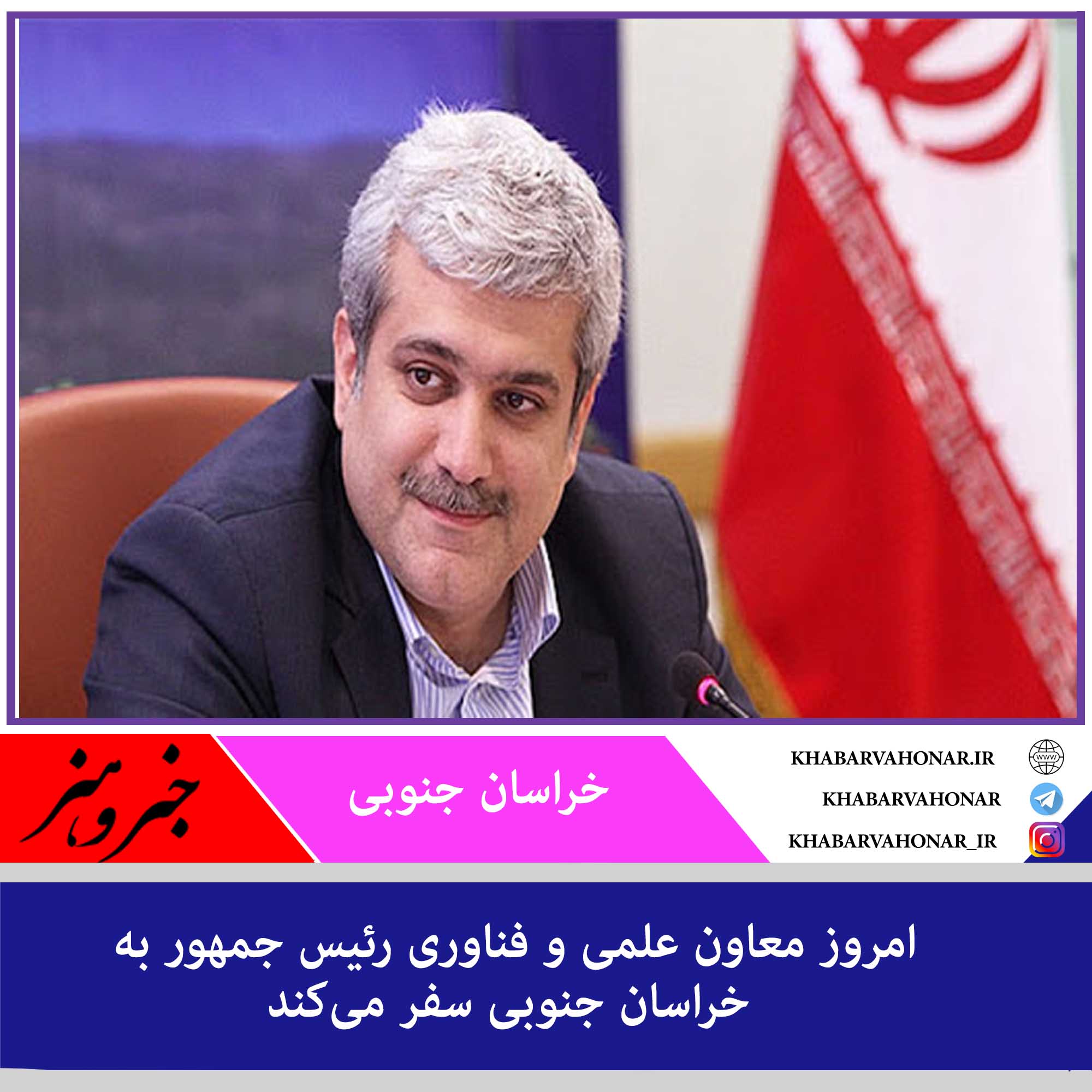 معاون علمی و فناوری رئیس جمهوری به منظور بازدید از طرحهای دانش بنیان و افتتاح صندوق پژوهش و فناوری خراسان جنوبی به خراسان جنوبی سفر می کند.