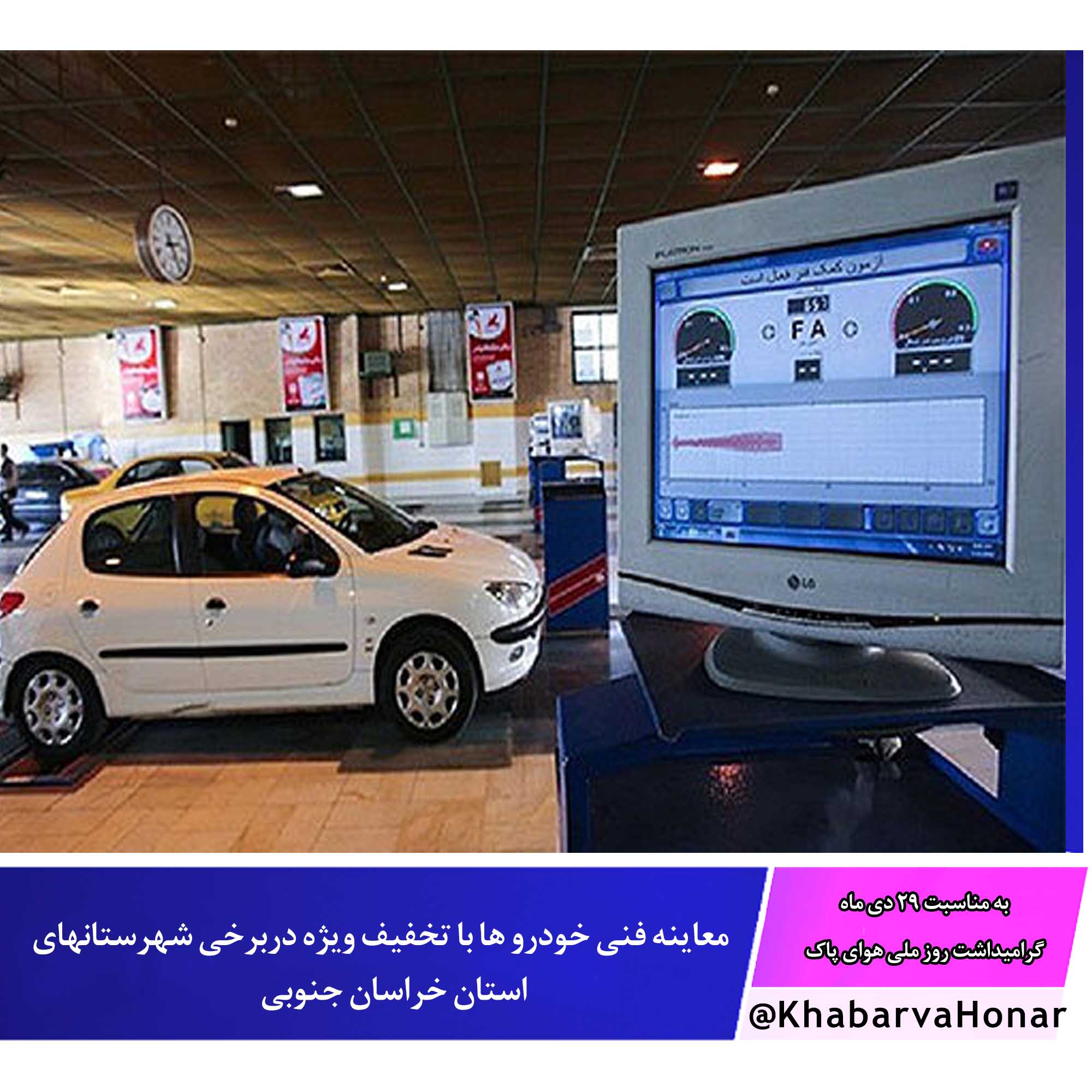 همزمان با گرامیداشت ۲۹ دی ماه روز ملی هوای پاک معاینه فنی خودرهای سبک در برخی شهرستانهای استان با تخفیف ویژه انجام خواهد شد .