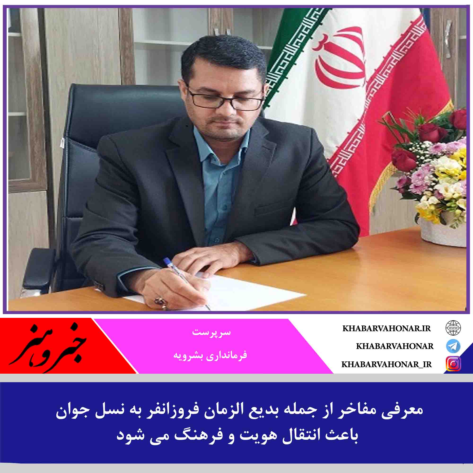 سرپرست فرمانداری بشرویه گفت: معرفی مفاخر از جمله بدیع الزمان فروزانفر به نسل جوان باعث انتقال هویت و فرهنگ می شود.