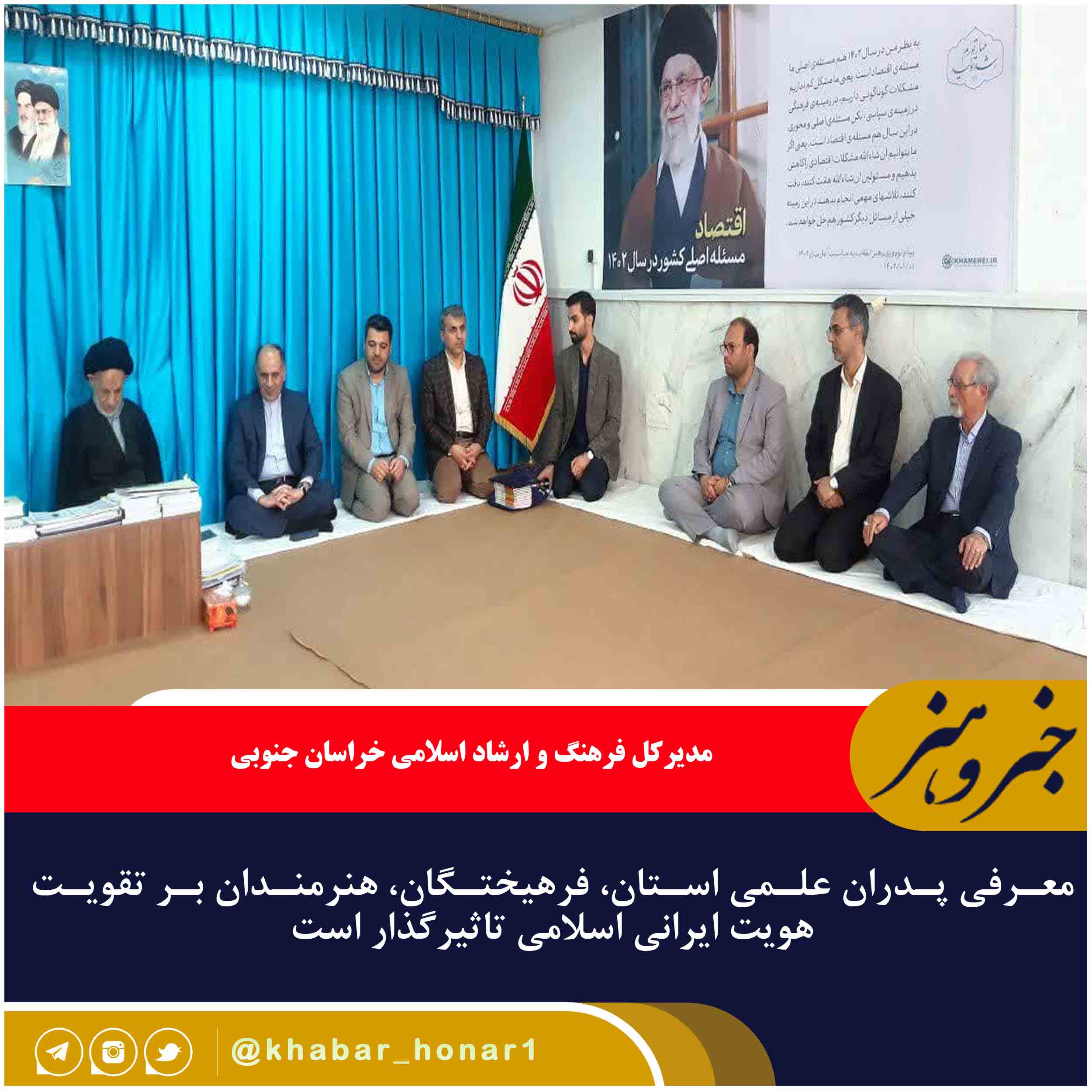 وی با اشاره به تاکیدات مقام معظم رهبری«مدظله العالی» بر تقویت هویت ایرانی اسلامی، افزود: معرفی پدران علمی استان، فرهیختگان، هنرمندان و سایر ظرفیتهای غنی که وجود دارد، گام مهمی در راستای پیشبرد این اهداف است که از جمله اقدامات صورت گرفته، مراسم بزرگداشت استاد فروزان فر در شهرستان بشرویه، بزرگداشت آیت الله اوحدی در شهرستان زیرکوه و بزرگداشت استاد ناقوس؛ شاعر آیینی استان در شهرستان بیرجند می باشد.